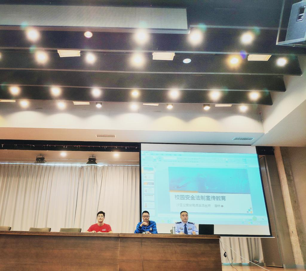 潘林就校园安全问题从电信网络诈骗、大学生安全知识、女生安全注意事项、毒品安全知识四个方面进行阐述,让同学们在生活中提高安全防范意识,在学习中了解安全法律知识。在安全法制宣传教育中,潘林以“知己知彼”的方式为切入点,让同学们了解犯罪分子最常用的诈骗手段;从各种诈骗案件中着手切入,让同学们对诈骗方式产生警惕心里,防患于未然。同时潘林指出,大学生应如何防骗和如何维护自身权益与安全,特别是女大学生如何保护自己的安全等问题。