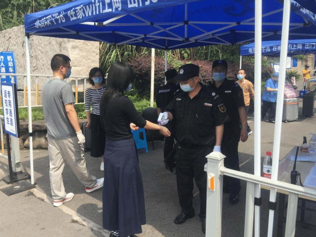 保卫处按照学校疫情防控工作领导小组要求,多次组织召开部门会议,根据疫情的形势变化,六次调整门岗的工作指令,布置观测点、外卖接收点、消毒脚垫,设置学生返校专用通道,一米排队等候,人行通道等标志,制作宣传标语、进出校门流程图,加强跟属地公安联系,高新区交巡警勤务二大队和虎溪派出所派出民警,协助维护学校及周边交通和治安秩序,周密安排部署学生返校复课的防控工作,确保学生返校防控工作万无一失。