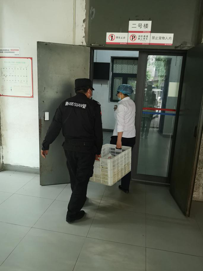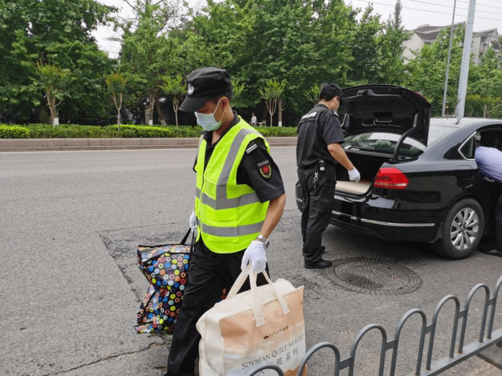 在多次培训会上,处领导要求全体川美保卫人,迎接学生返校要像迎接自己的孩子回家一样。看见学生大包小包地提着行李进入校园,保卫干部和保安队员纷纷上前主动提供帮助,将校园巡逻车暂时改为“行李摆渡车”,把学生行李送至学生寝室楼下。在湖北学子返校健康管理期间,学校保安每天坚持给同学们按时送餐,一日三餐,不仅仅是暖暖的饭菜,更是浓浓的师生情谊。