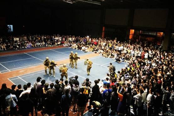 当晚,校学生会、社团联合会、大学生艺术团带着精心编排的12个丰富多彩、形式各异的节目来到室内羽毛球馆,为虎溪校区2018级新生带来了军训心声视频,综合舞《舞动乾坤》、跆拳道《出战》、小品《明月客栈》、歌曲《屋顶》、《白月光》、配音节目《入学指南》、街舞《dancing blow》、《Fai Crew Showcs》、《军迷、汉服、托亚社团联合展示》等节目,敬爱的教官还为大家表演了精彩节目《渴望》,让整个演出达到高潮。优美的舞姿,动听的旋律,现场气氛高涨,掌声、欢呼声不断。互动环节时,教官、新生也融入表演中,赢得阵阵掌声与叫好。