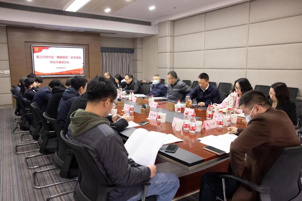 3月2日、3月3日,学校分别举行了第三次党代会“两委报告”管理人员代表、离退休老同志代表、统一战线人员代表、师生代表共计四场征求意见座谈会。党委书记唐青阳主持座谈会,党委副书记左益、纪委书记黄云出席会议。