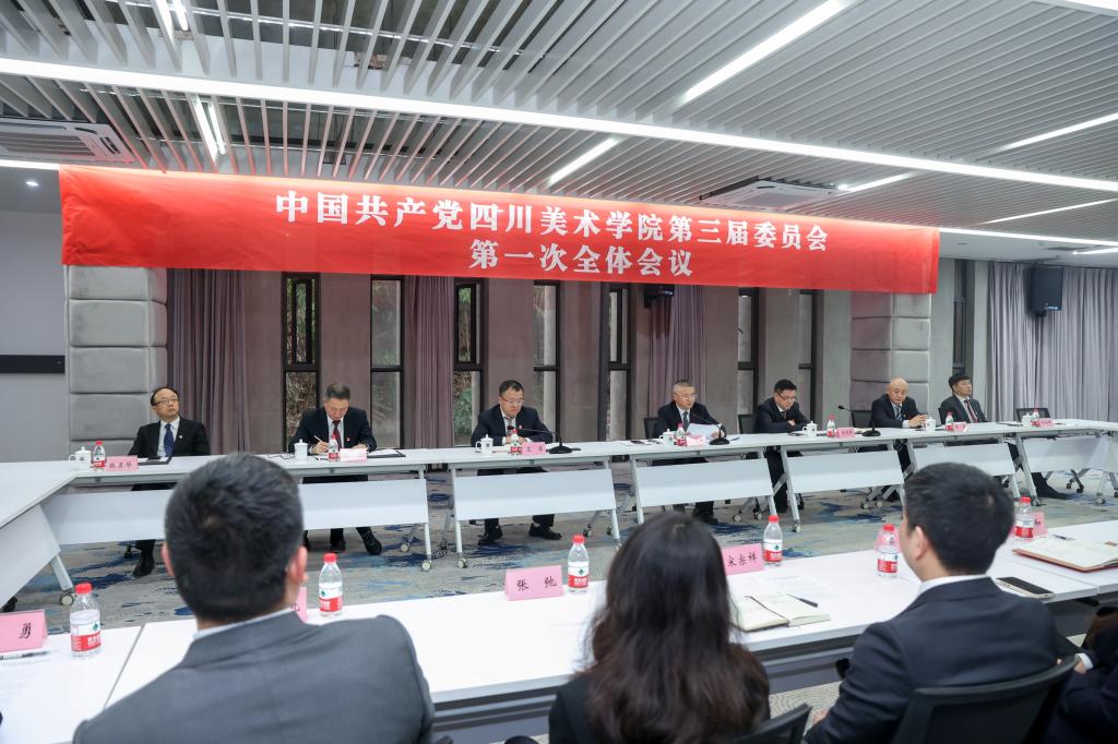 3月18日下午,中国共产党四川美术学院第三届委员会第一次全体会议在虎溪校区第五会议室召开。新当选的23名党委委员出席会议,新当选的9名纪委委员列席会议。会议由唐青阳同志主持。