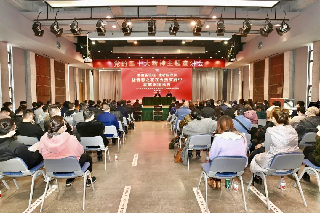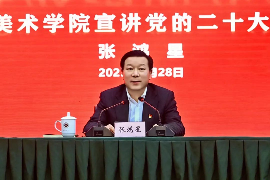 2月28日,市委常委,两江新区党工委书记张鸿星来到四川美术学院,向广大师生宣讲党的二十大精神。学校党委书记唐青阳主持宣讲会。