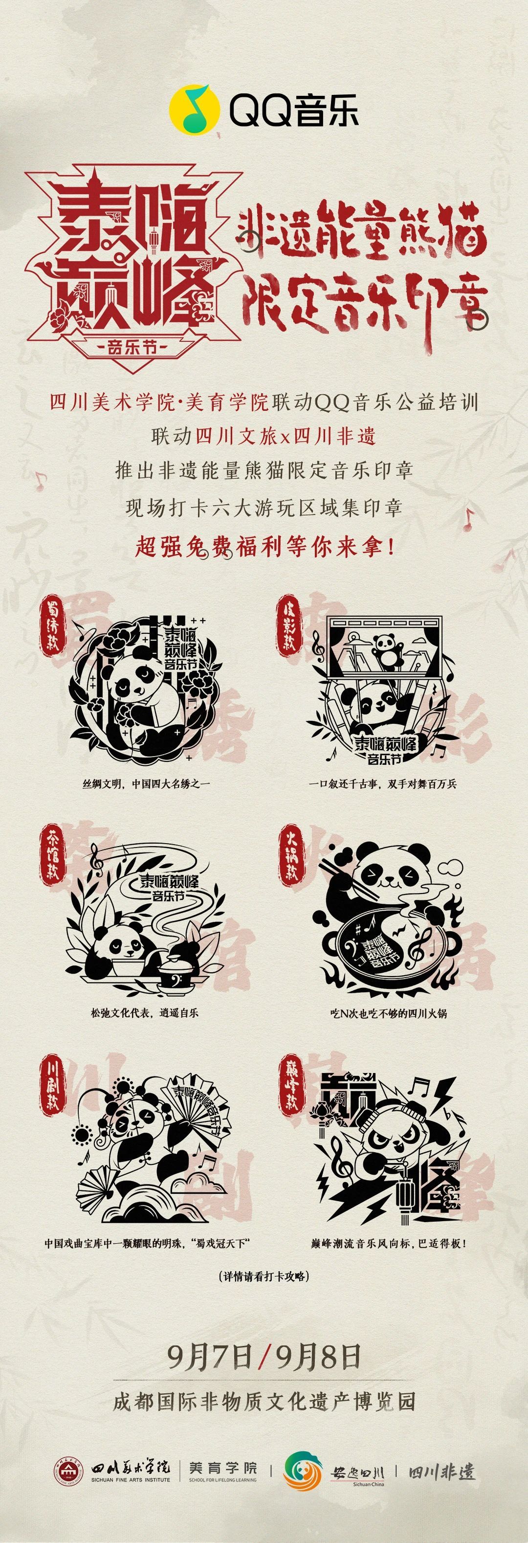 文创印章让憨态可掬的大熊猫化身音乐达人,通过富有巧思的画面语言展现四川非遗文化与音乐和生活场景的融合。这一跨界合作打破次元壁,带人们近距离感受非遗文化的独有魅力。