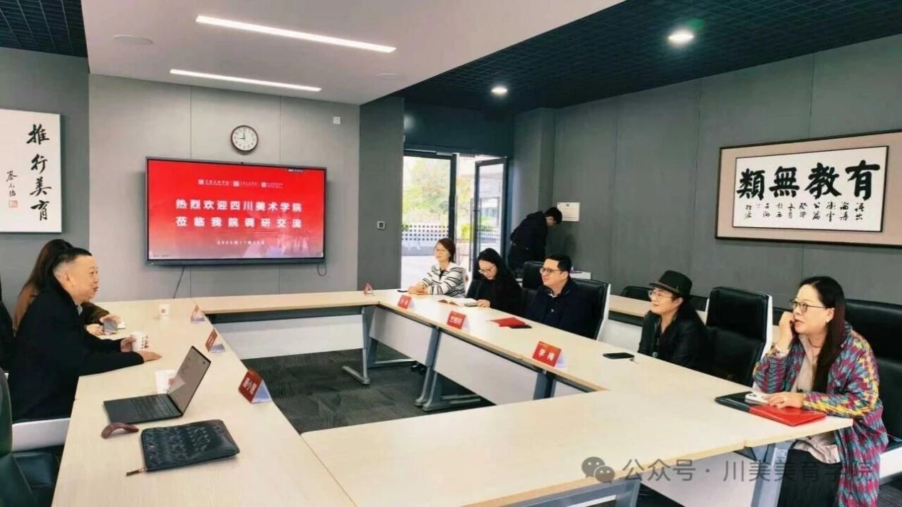 肖志院长介绍了美育学院的办学定位与发展规划,就学院在跨界美育项目打造、乡村美育实践、行业协同育人等方面的探索进行了分享。双方就美育资源共建共享、社会服务模式创新、全民艺术素养提升等问题进行了深入交流和探讨。