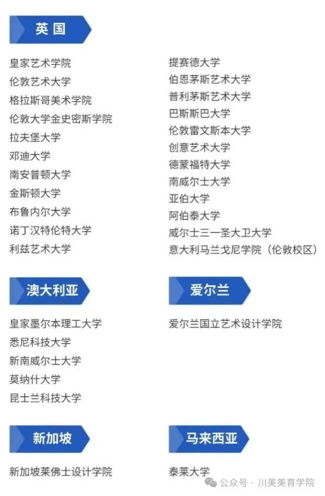 本项目的海外升学院校皆为中国教育部认可的海外高等艺术设计类院校。它们有着深厚的历史文化底蕴、丰富的艺术资源、雄厚的师资力量以及一流的学术水平,是全球艺术教育领域的引领者: