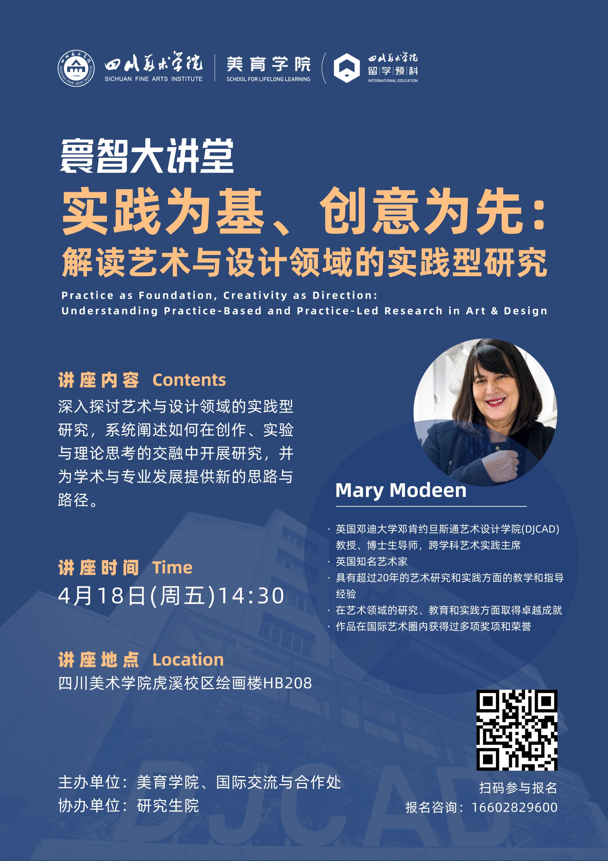 英国邓迪大学邓肯约旦斯通艺术设计学院(DJCAD)教授、博士生导师,跨学科艺术实践主席