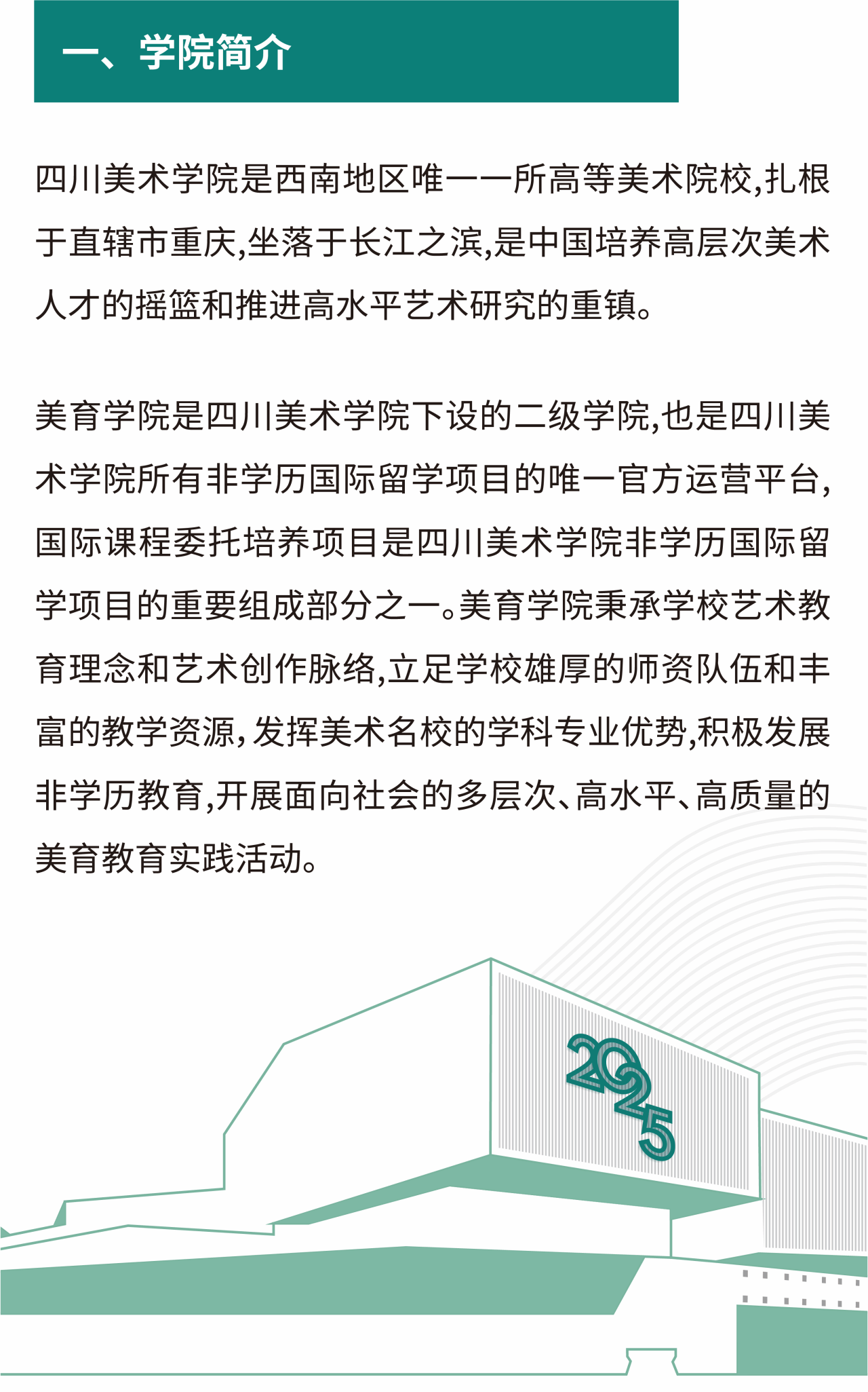 下一篇:四川美术学院 2025年国际硕士课程(1+2)委托培养项目(意大利)招生简章