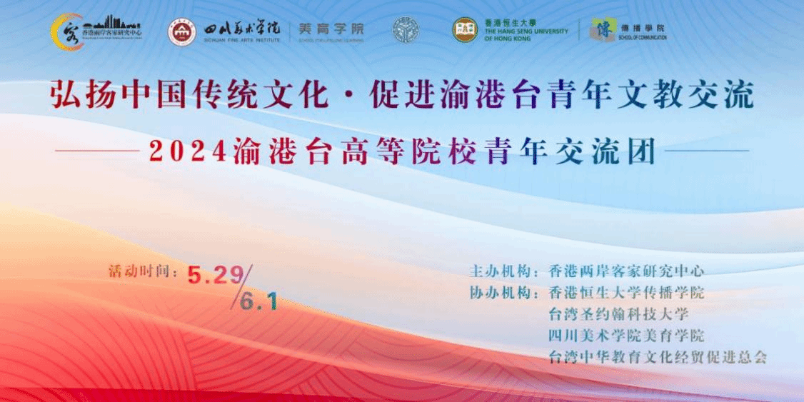 5月29至6月1日,香港两岸客家研究中心组织渝港台高等院校青年交流团来渝参访。该交流活动由香港两岸客家研究中心主办,香港恒生大学传播学院、台湾圣约翰科技大学、四川美术学院美育学院与台湾中华教育文化经贸促进总会协办,旨在加强香港、台湾、重庆高等院校青年交流,推动渝港台高等院校青年互动互往、互学互鉴,传承和弘扬中华传统文化。