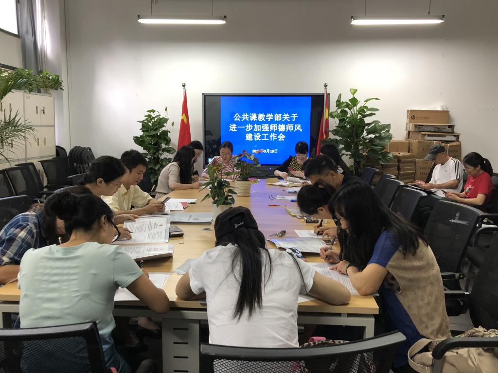根据学校相关工作安排,9月19日下午,公共课教学部组织全体教职工集中开展师德师风建设活动及网络安全学习活动。