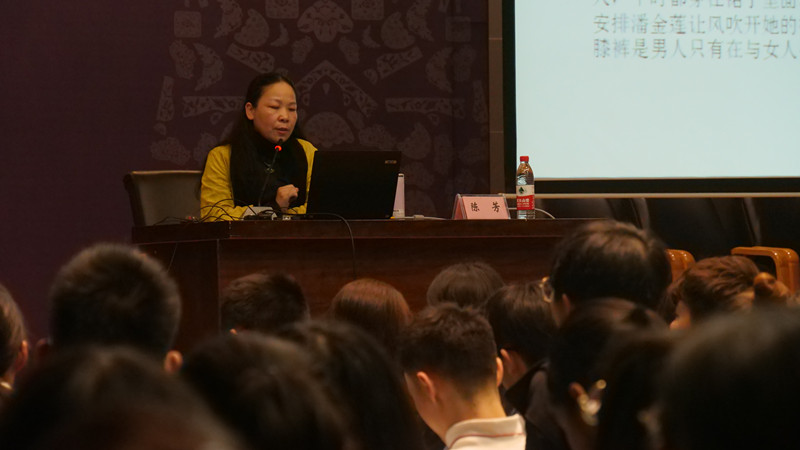 讲座的最后,陈芳老师提纲挈领地总结道,潘金莲的服饰体现的服饰与资本的关系——身体资本(性感),文化资本(才情),经济资本(独立),实际上是晚明世风的体现。陈老师语重心长地指出,古代服饰是中国传统文化的重要组成部分,研究难度大,亟待深入地展开研究,并勉励同学们要关注中国传统文化,努力学习,实现中华文化的伟大复兴!陈老师的讲座迎得在场师生一阵阵热烈的掌声。