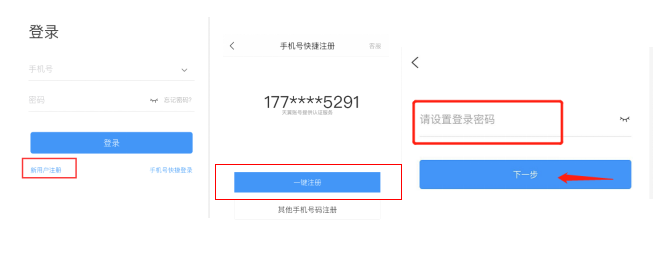 进入app界面后,选择【新用户注册】会自动跳转【手机号快捷注册】如果是当前手机号选择【一键注册】按照提示获取验证码,并登录;如果不是当前手机号选择【其他手机号注册】完成提示获取验证码,并登录即可。