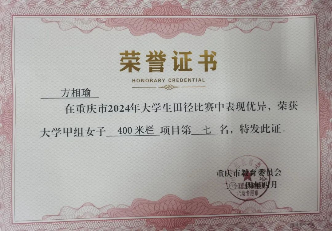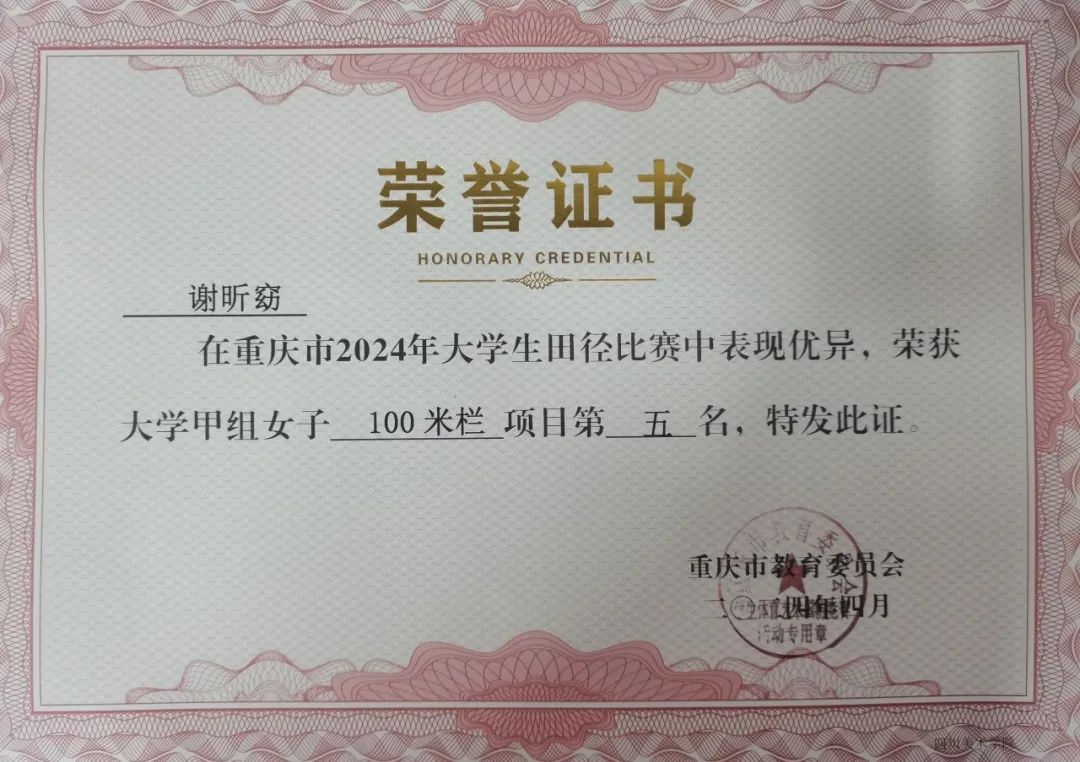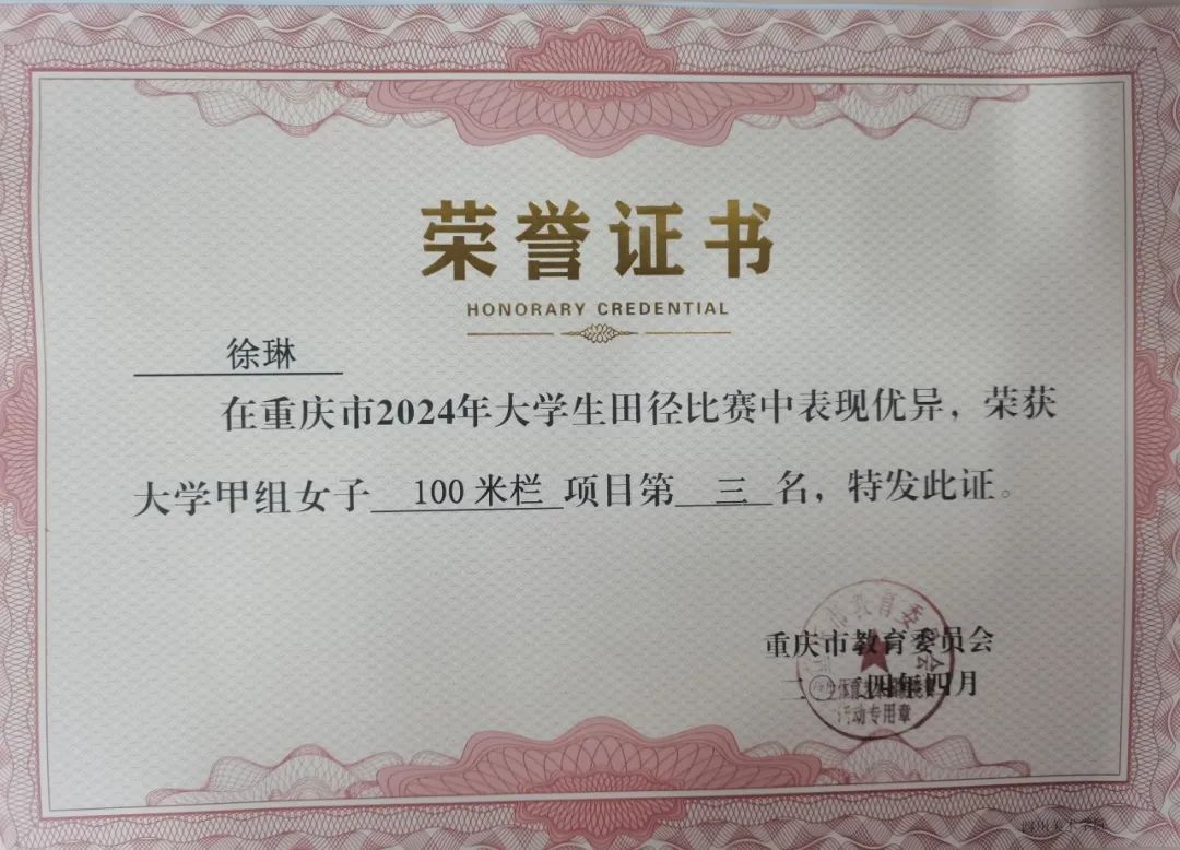 我校田径队由通识学院体育教学部教师陈真伟、王红云带队,选拔12名队员,参加了甲组18个项目的激烈角逐,同学们克服了恶劣天气及伤病的困难,取得了优异的成绩。2022级公共艺术学院韦丹娜同学以24.15米的成绩获得了女子标枪冠军,并且打破了我校标枪纪录,2023级建筑与环境艺术学院研究生徐琳同学获得了女子100米跨栏第三名,2023级建筑与环境艺术学院谢昕窈同学获得了女子100米跨栏第五名,2022级造型艺术学院田仁豪同学获得了男子跳远第五名,2021级建筑与环境艺术学院方相瑜同学获得了女子400米跨栏第七名,并在800米跑中以2′47″4的成绩打破了我校沉寂了14年的校纪录,2020级公共艺术学院殷明同学以17′52″23的成绩打破了我校5000米校纪录,徐琳、方相瑜两位同学被大会评为体育道德风尚奖先进个人。