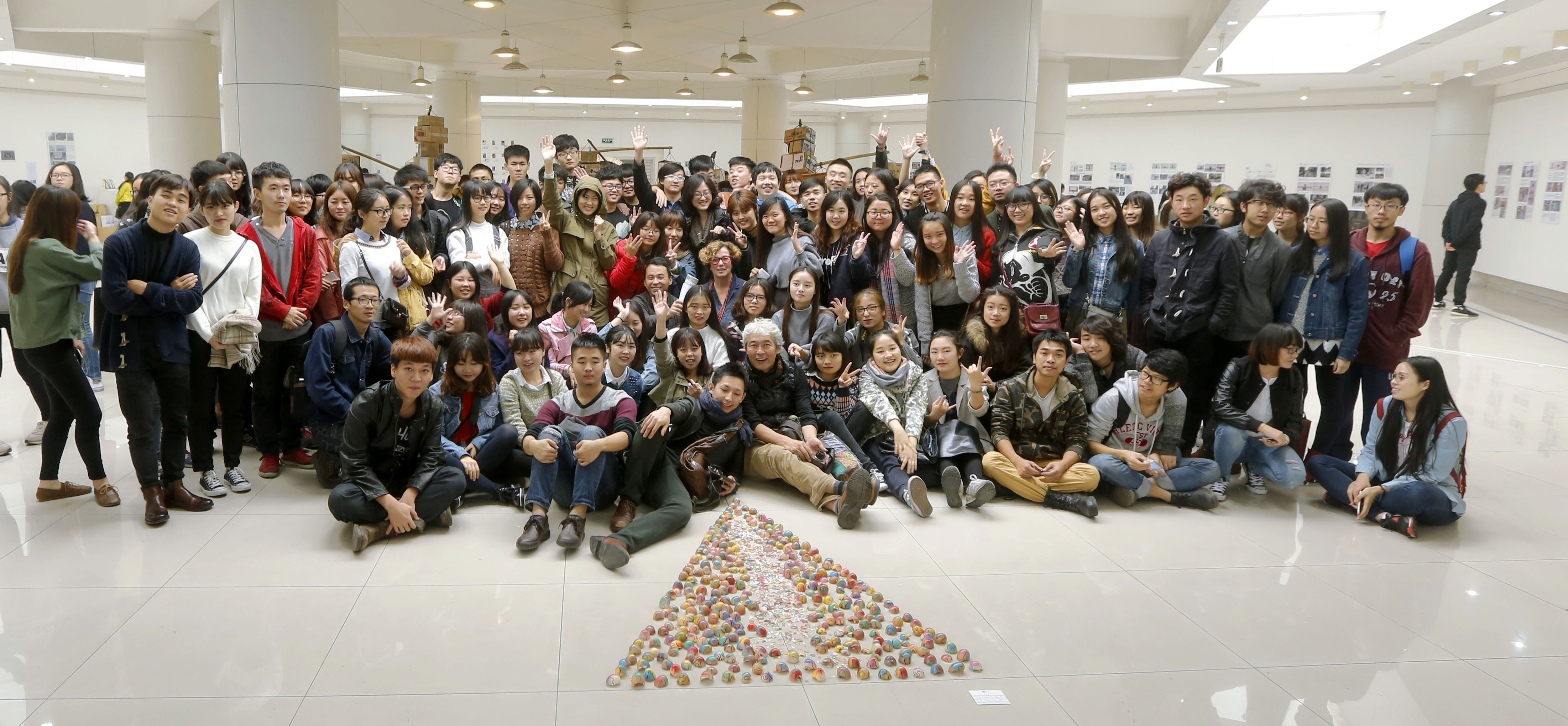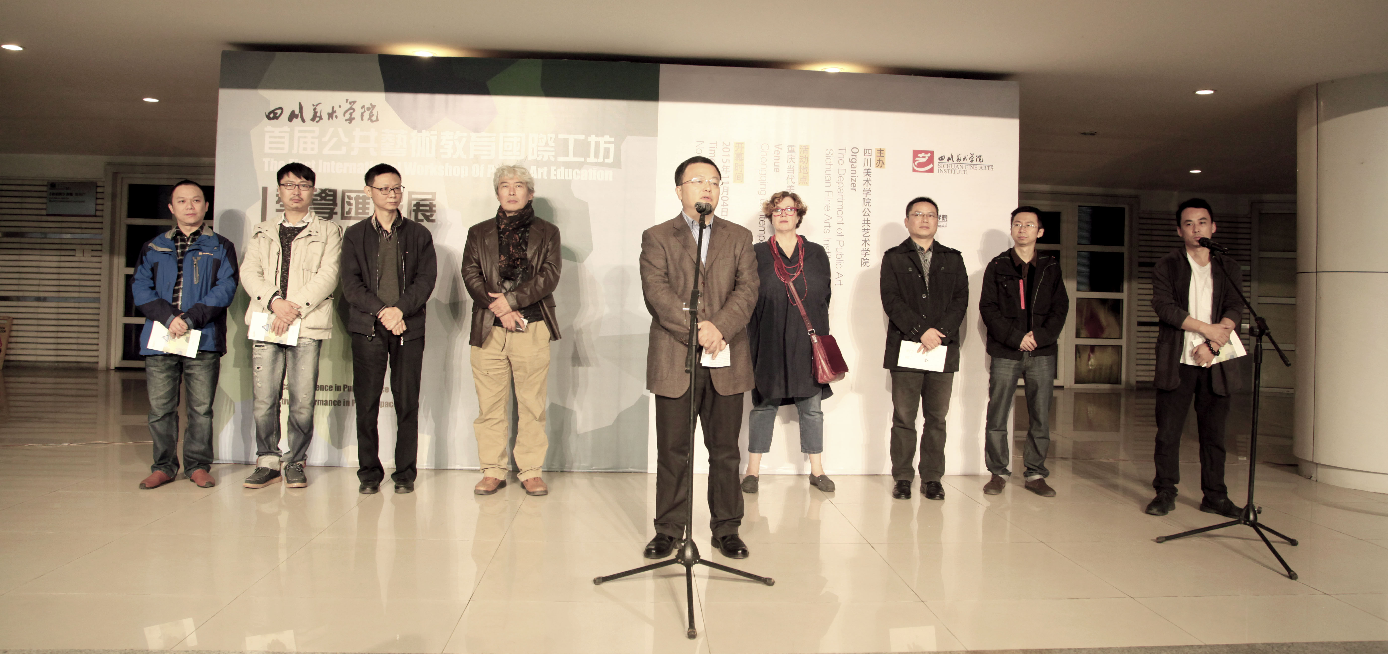 11月4日上午9:15,我校首届“公共艺术教育国际工坊”教学汇报展在重庆当代美术馆顺利开幕。校党委副书记左益、公共艺术学院党总支书记钟正武、副书记郭小兵,受邀日本艺术家霜田诚二先生、德国艺术家比格特·哈兹海纳女士和师生们一起参加了开幕式,仪式由公共艺术教研室主任曾令香主持。
