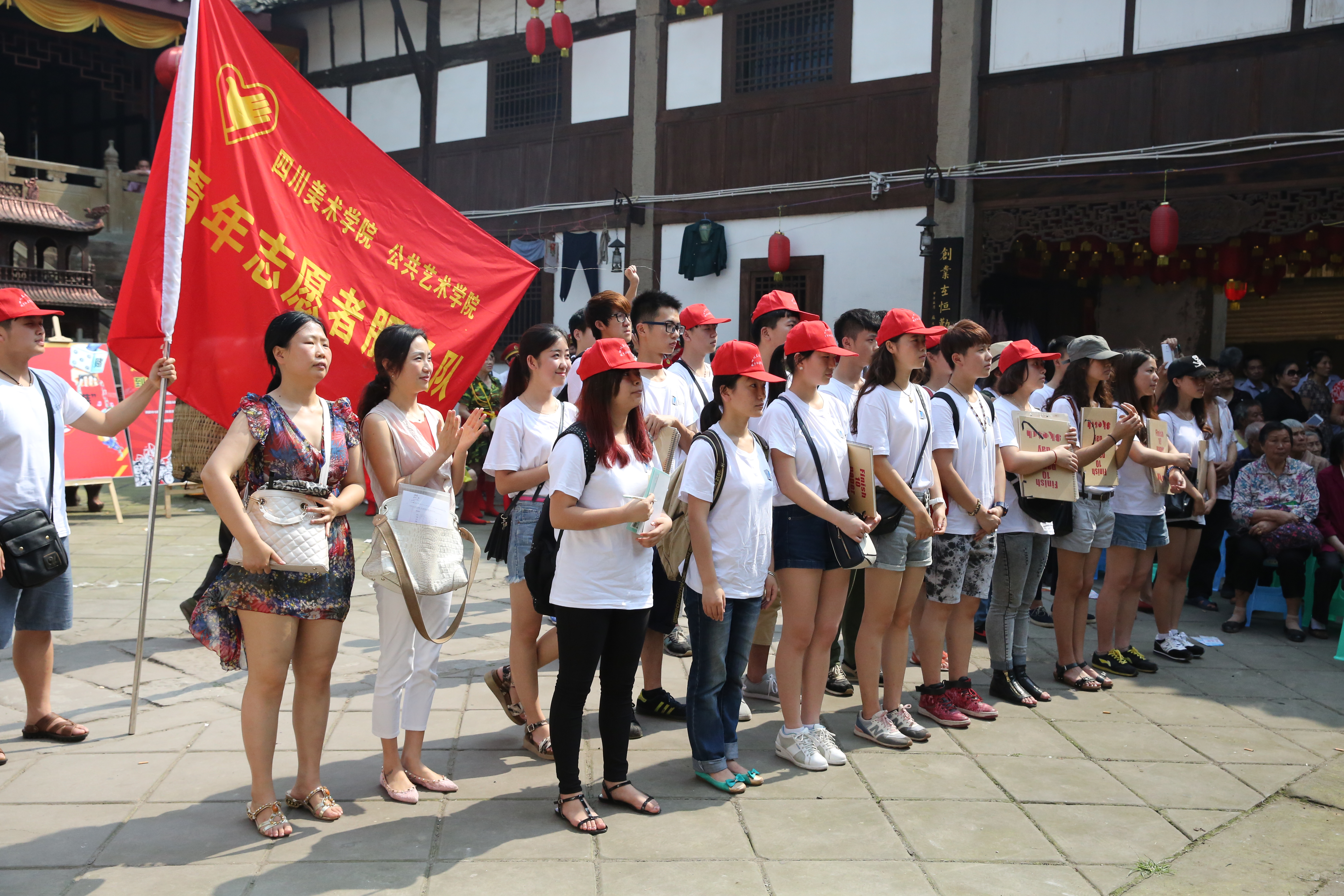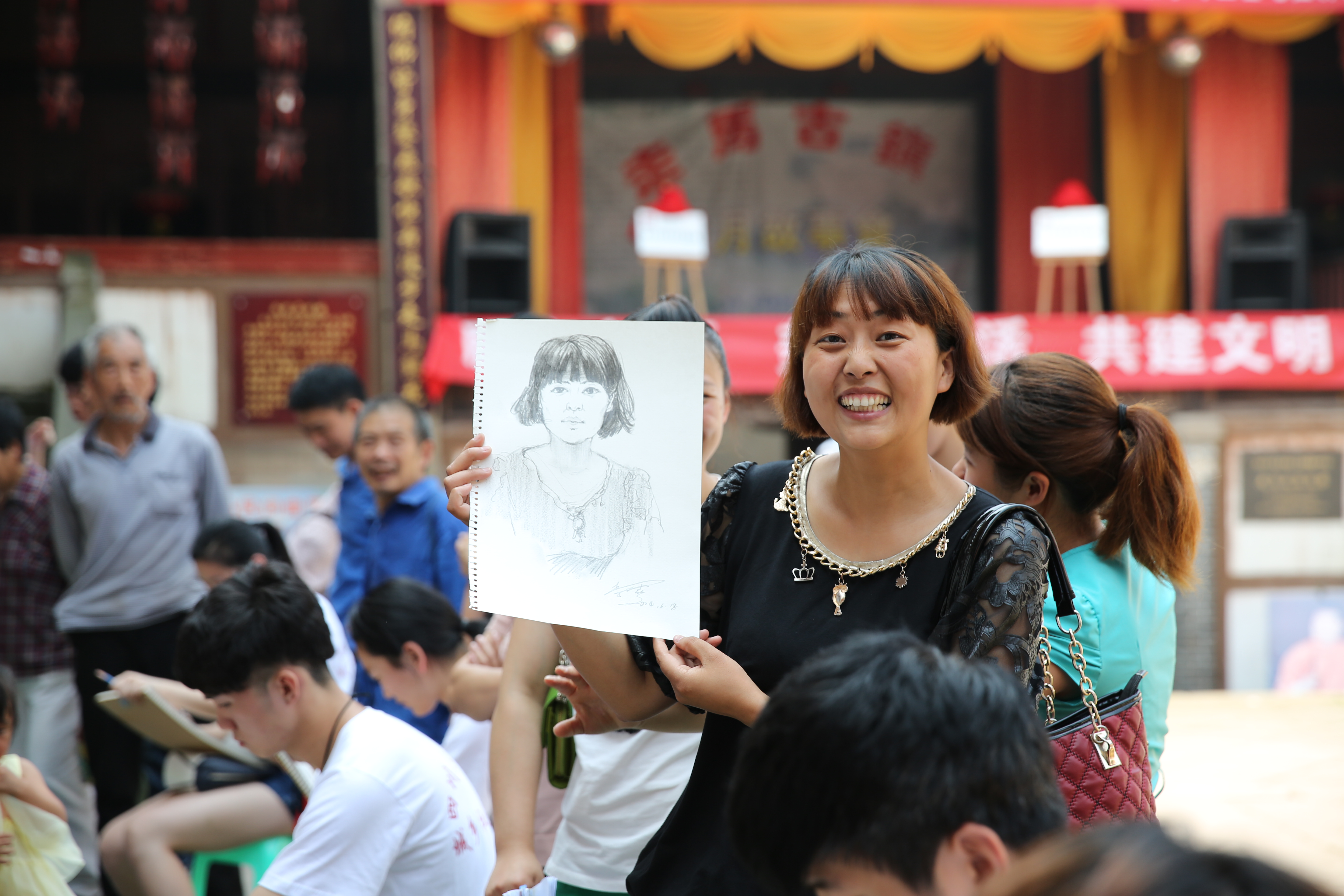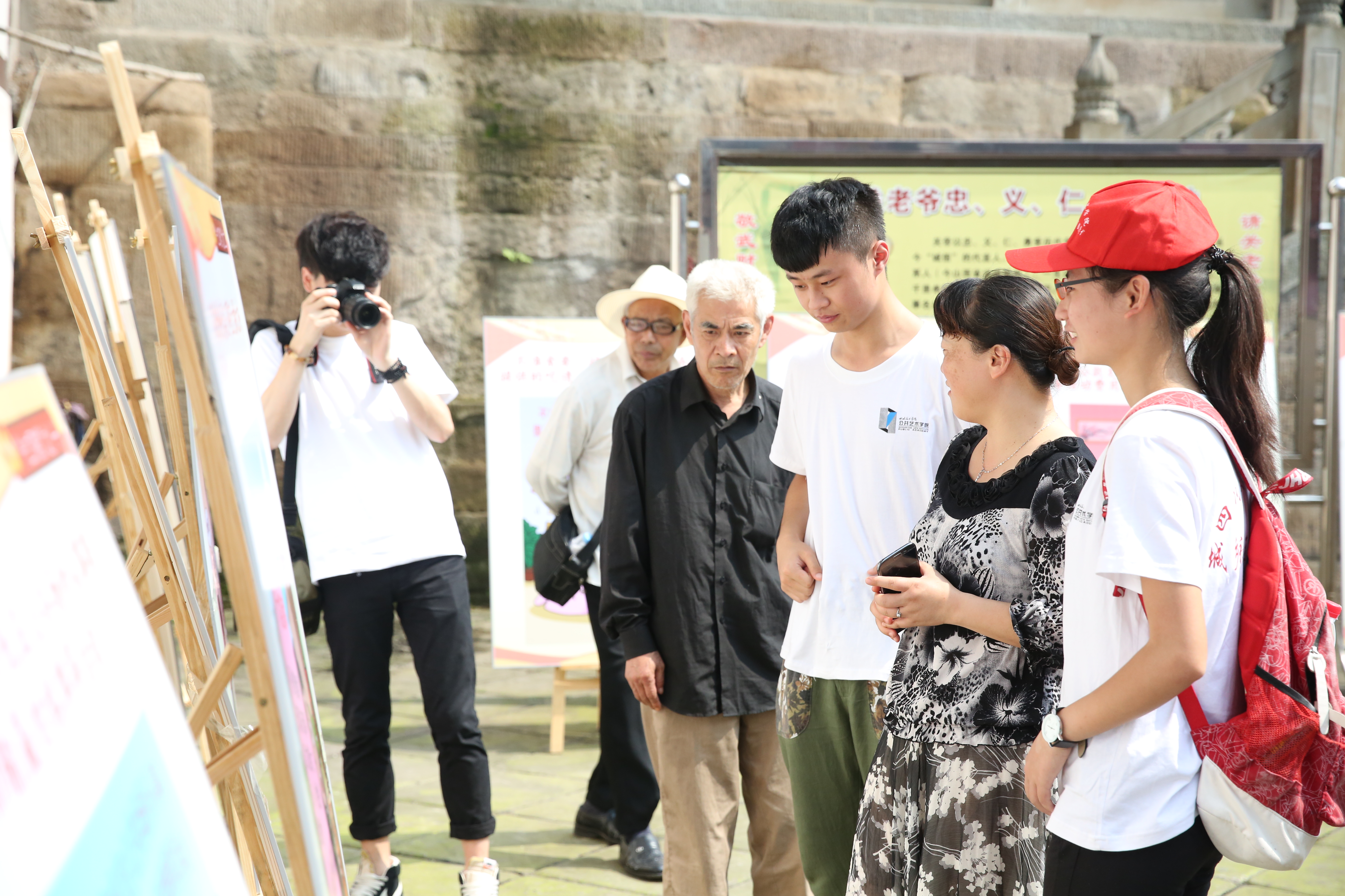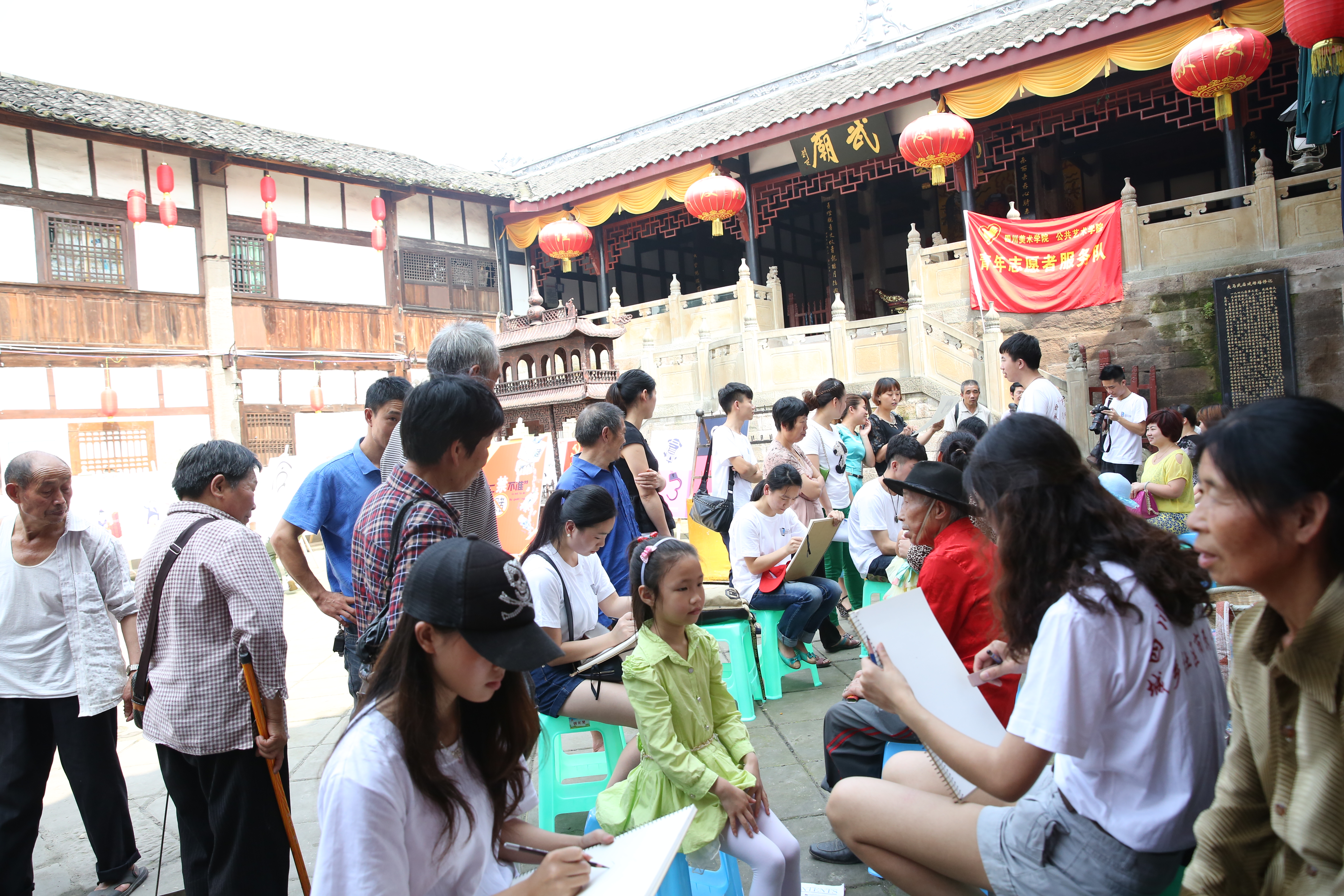 仪式结束后,22名学生志愿者们在古镇举办了四川美术学院党的群众路线教育实践活动招贴设计大赛获奖作品展并开展了学生现场写生、采风活动。活动现场同学们热情洋溢,村民们积极配合,志愿者向社区居民宣传讲解展板内容;深入古镇茶馆、街道为居民画像,并将画作送给居民。