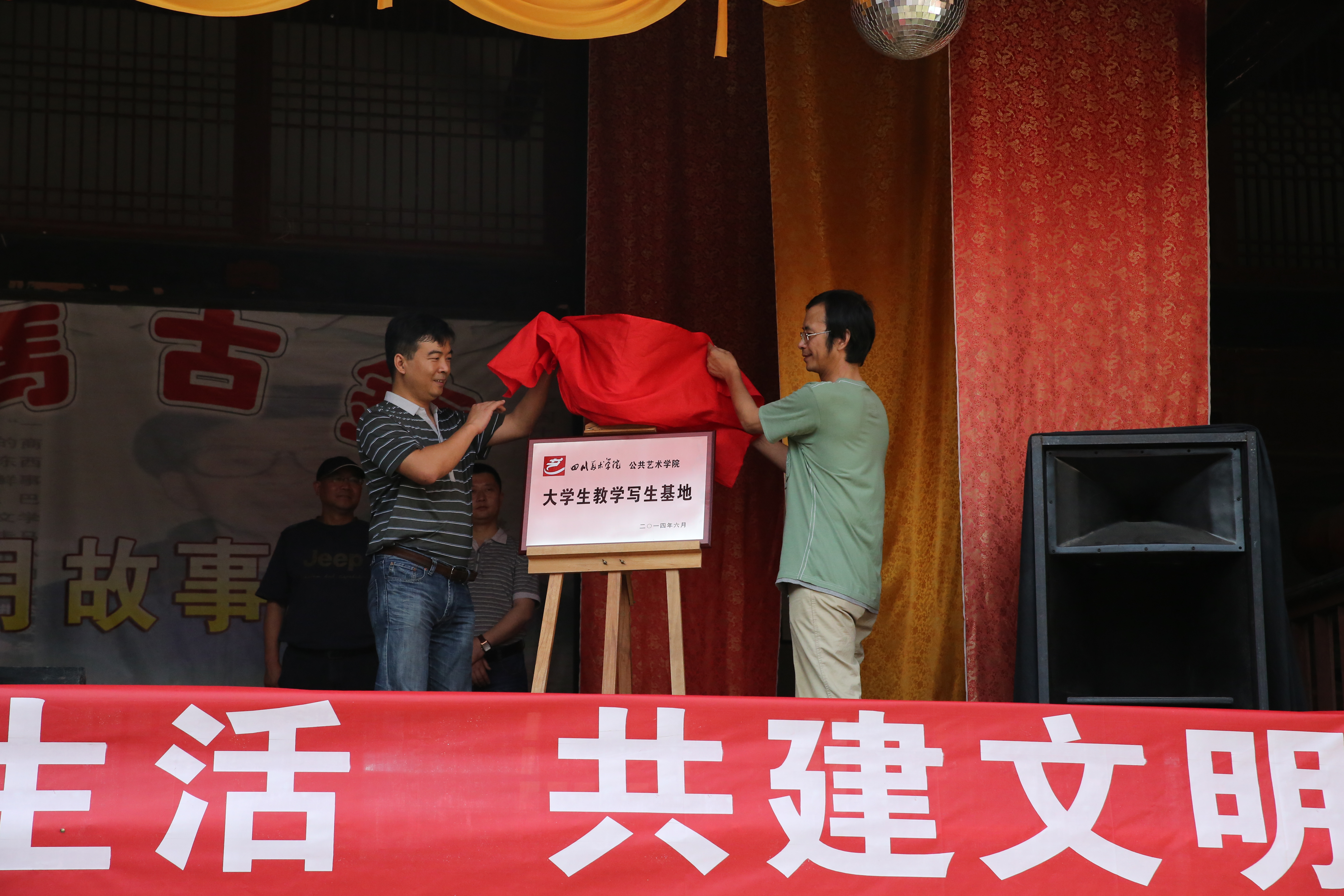 首先我院党总支常务副书记谢鸣理致辞,代表学院表示将通过市民学校和写生基地良好的平台,结合美术院校专业特点,开展人民群众喜闻乐见的活动,积极创作反映走马镇自然风光和人文特色的艺术作品。接下来走马镇党委书记黄伟讲话,介绍了走马镇在城乡新农村发展中取得的显著成效,并预祝两个基地建设成功。最后,由到场四位领导为“城乡市民学校共建基地”和“大学生教学写生基地”揭牌。