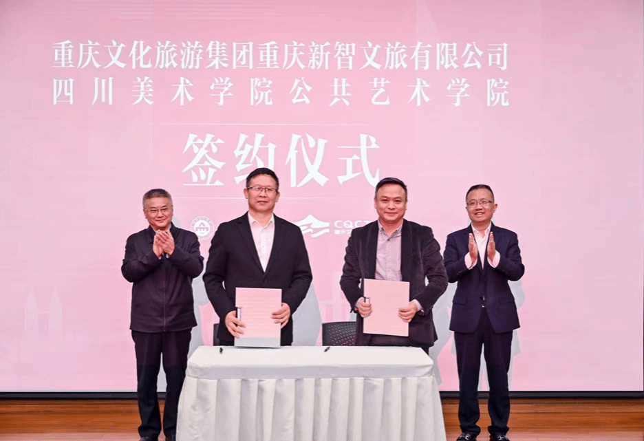 论坛现场,重庆新智文旅有限公司与四川美术学院公共艺术学院签订合作协议。学校党委常委、副院长段胜峰向重庆新智文旅有限公司授牌“校外实践教学基地”,重庆文旅集团副总经理杨静向公共艺术学院授牌“新智文旅协同创新研发中心”,标志着双方“学研产城”融合迈入实质阶段。