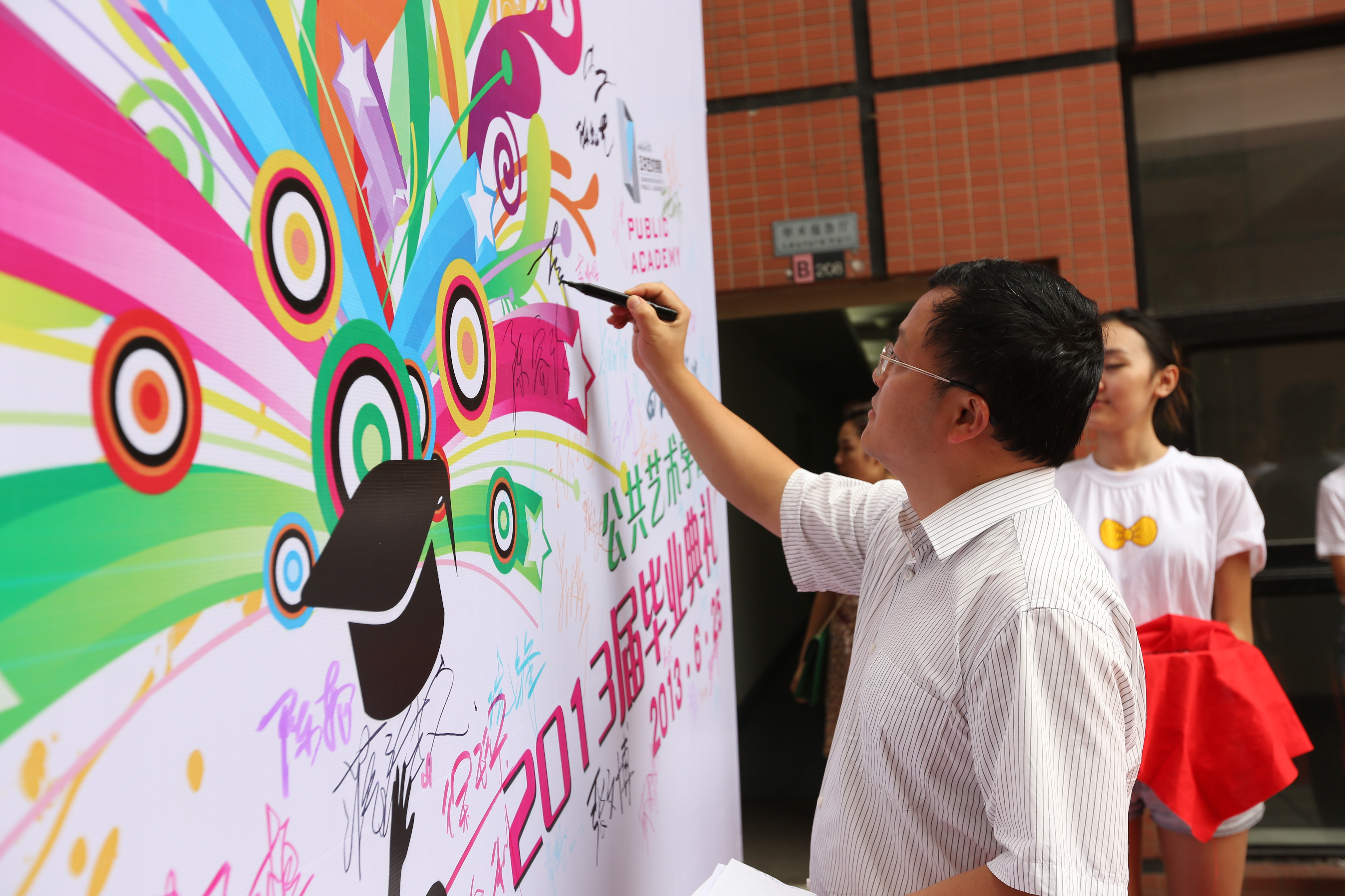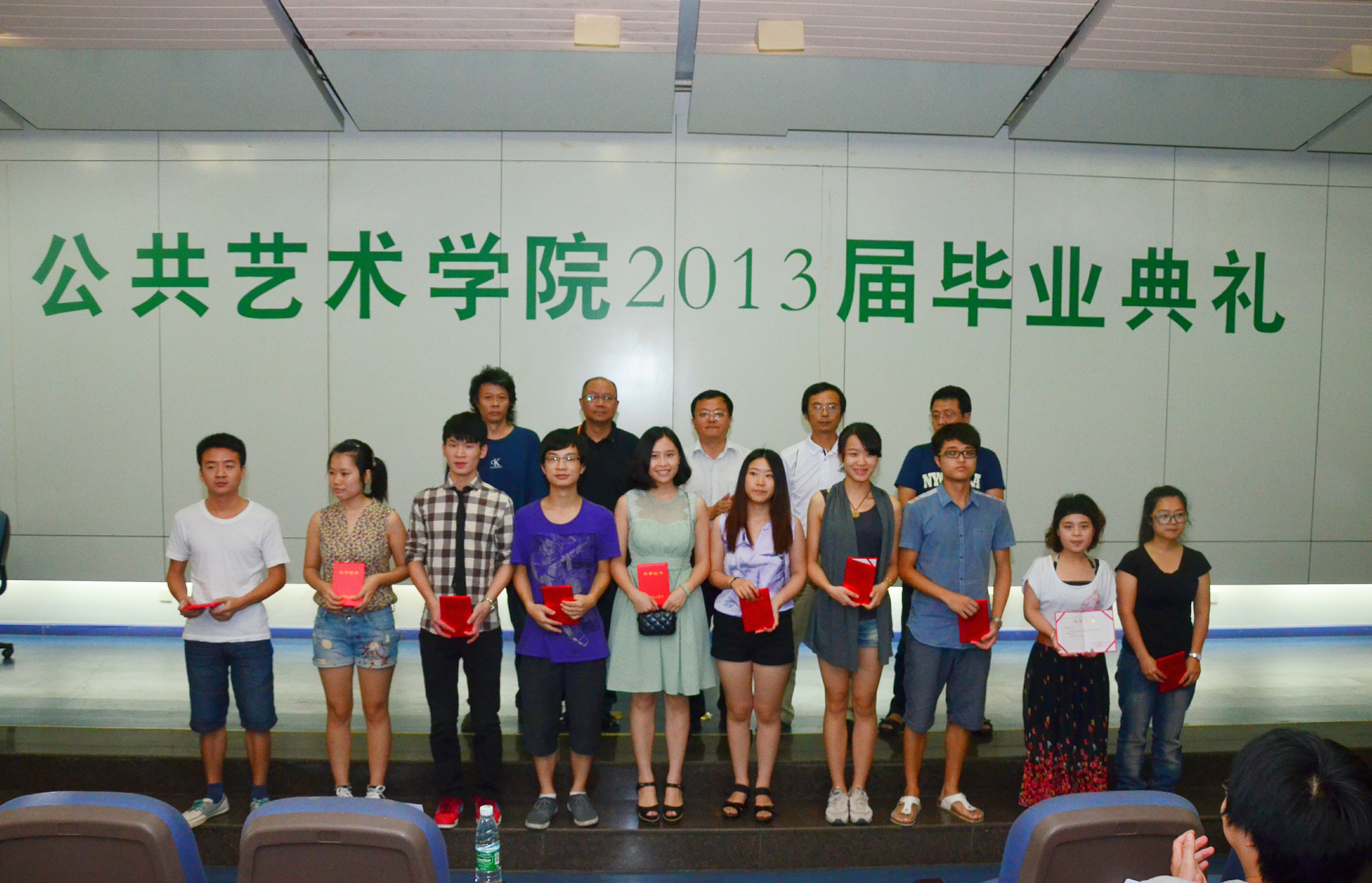 6月25日下午3:00,四川美术学院公共艺术学院2013届毕业典礼在黄桷坪校区学术报告厅举行。校党委副书记左益、公共艺术学院党政领导沈渝德、谢鸣理、黄山,教师代表和全体毕业生一起参加了典礼,由秦谊副书记主持。