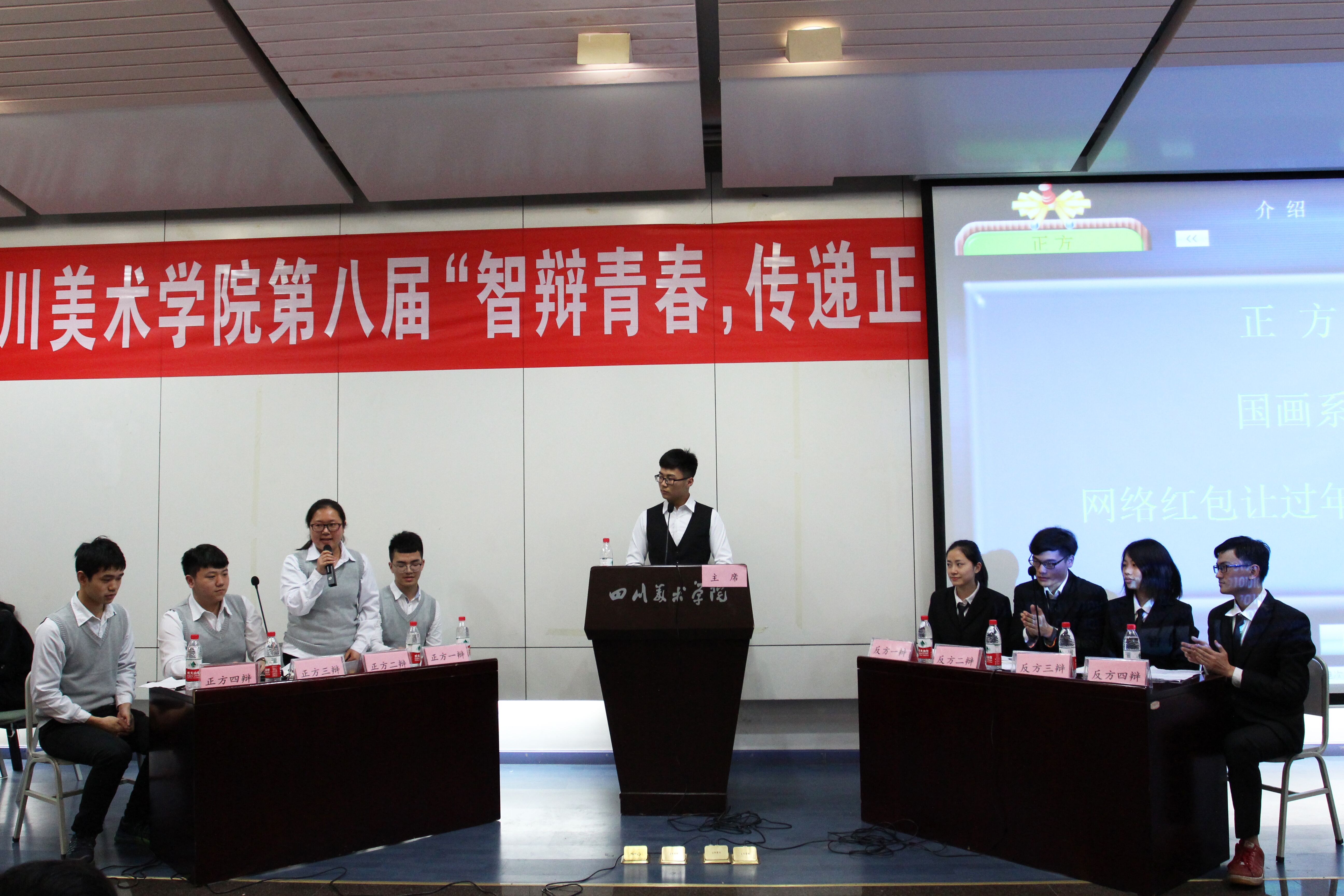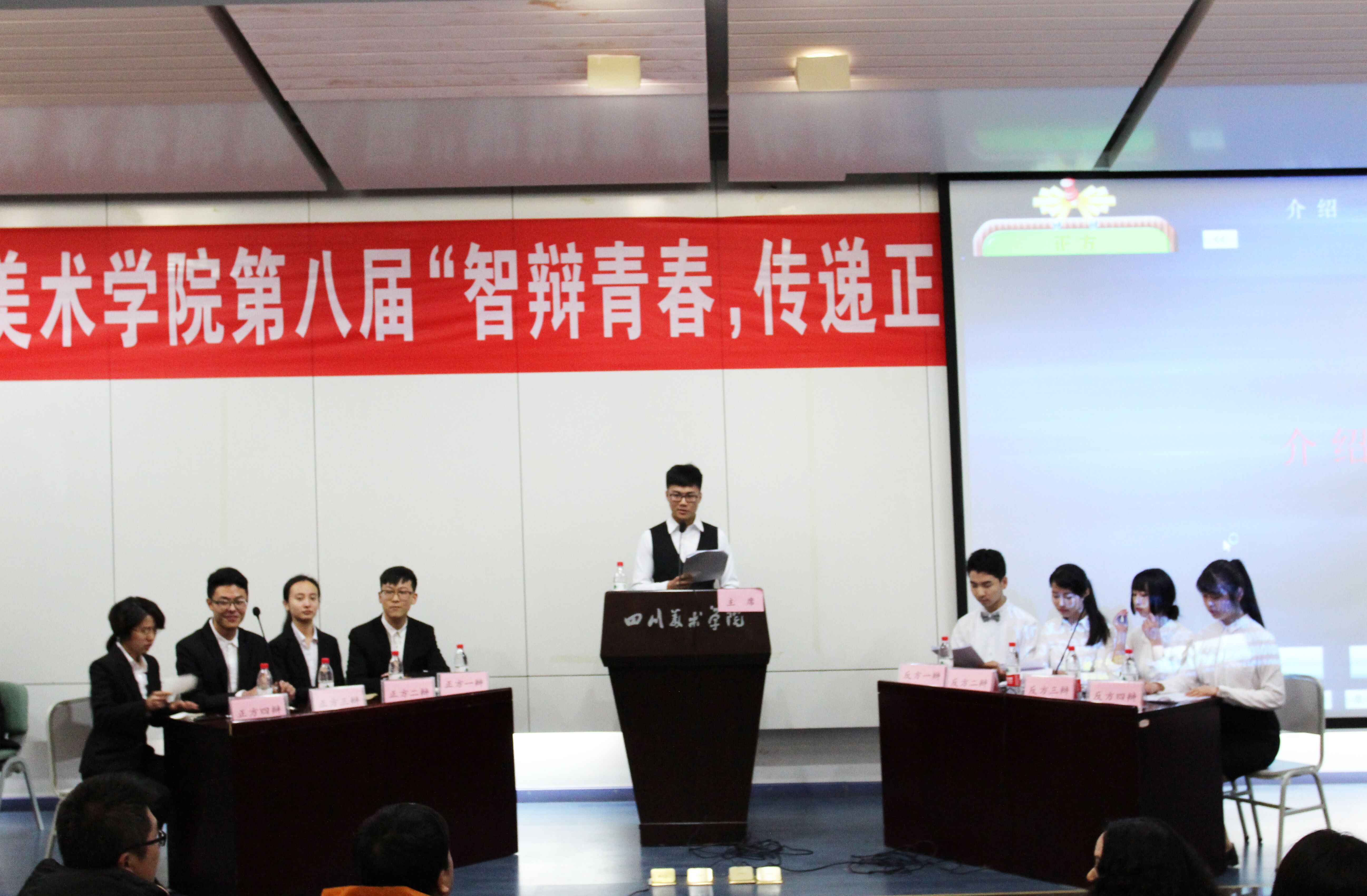 3月23日下午六点半,四川美术学院第八届辩论赛复赛,在黄桷坪校区学术报告厅举行。8个院系的选手和评委吴晓春,王德兵,朱仁金,张坤老师参加此次辩论赛,并且吸引许多同学前来观赛。公共艺术学院党总支副书记郭小兵老师作为特邀嘉宾出席了本次辩论赛。