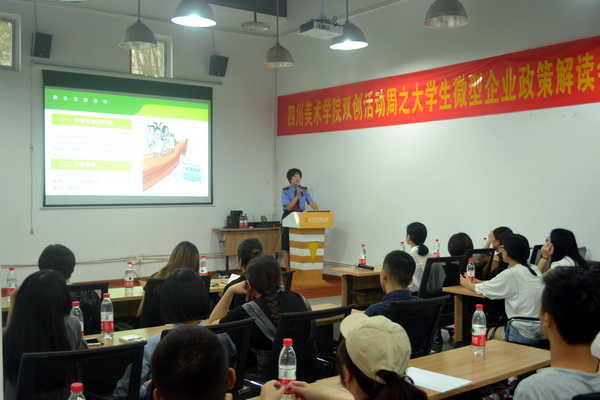 9月15日下午3点,由学校党委学工部主办、校学生会创业就业部协办的四川美术学院双创活动周之大学生微型企业政策解读会在微企园培训中心如期进行。活动特邀到沙坪坝区工商分局微企科副科长徐惠荣为大家解读。