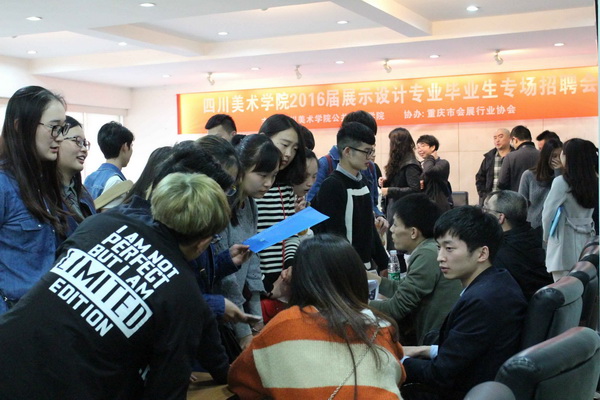 3月18日下午,四川美术学院展示设计毕业生专场招聘会在黄桷坪校区举办。本次招聘会吸引了重庆17家会展设计公司和展示设计专业的同学参与。