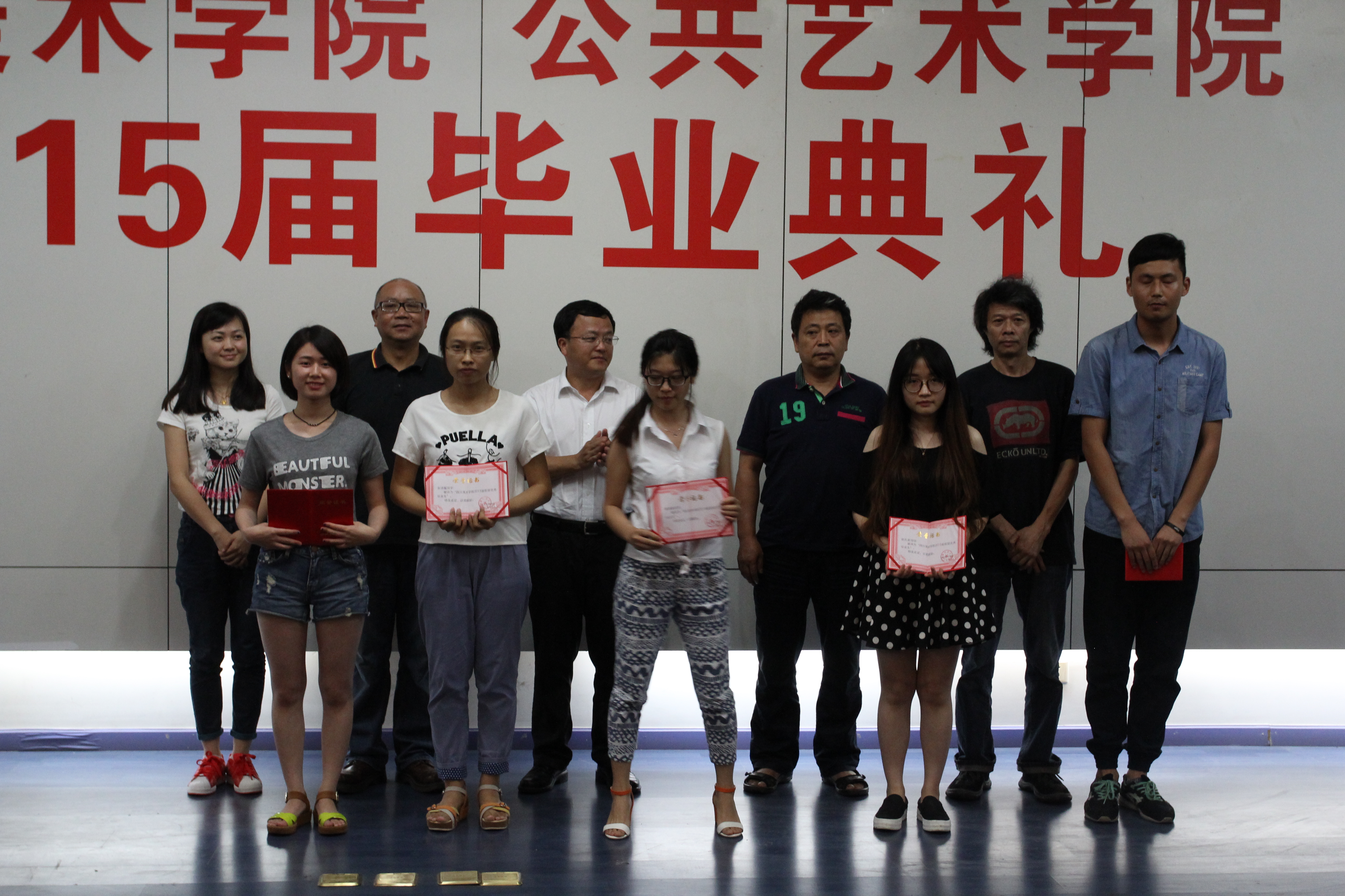 6月29日下午3:00,四川美术学院公共艺术学院2015届毕业典礼在黄桷坪校区学术报告厅举行。校党委副书记左益、公共艺术学院党政领导沈渝德、秦谊、黄山、四川美术学院团委书记张弛和教师们参加了典礼,由胡经菁老师主持。