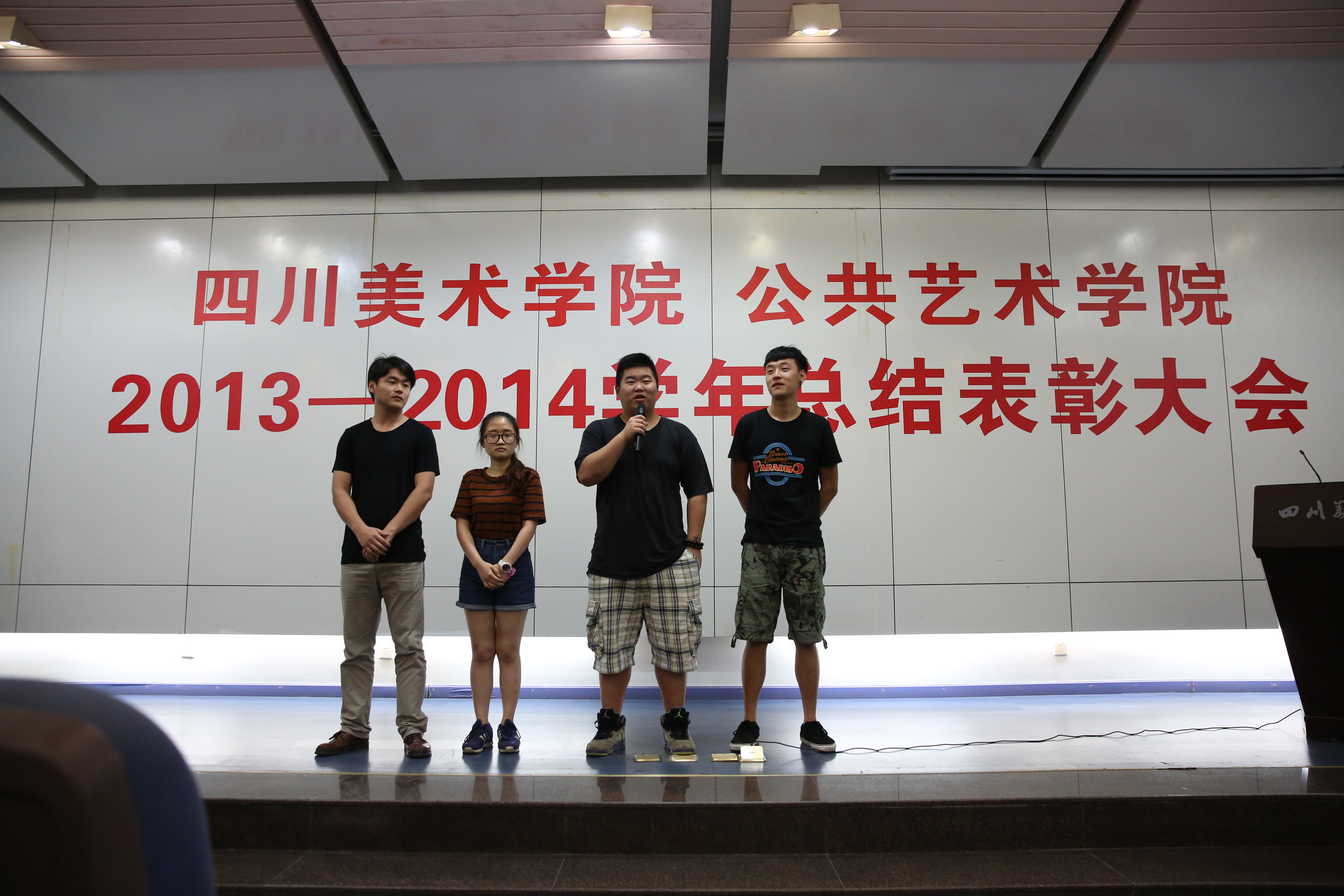 然后,四位老师宣读了在13—14学年各项评优和活动中获得优异成绩的名单,并颁发获奖证书。表彰内容包括重庆市、四川美术学院争先创优活动先进集体和个人、共青团四川美术学院委员会2013年度五四表彰、2014年四川美术学院春季田径运动会单项获奖、2014年四川美术学院篮球赛最佳队员、公共艺术学院“人人参与 积极行动”创建国家卫生区招贴大赛获奖作品、团总支学生会优秀干部和优秀部员,会上同时颁发了2014—2015学年团总支学生会干部聘书。
