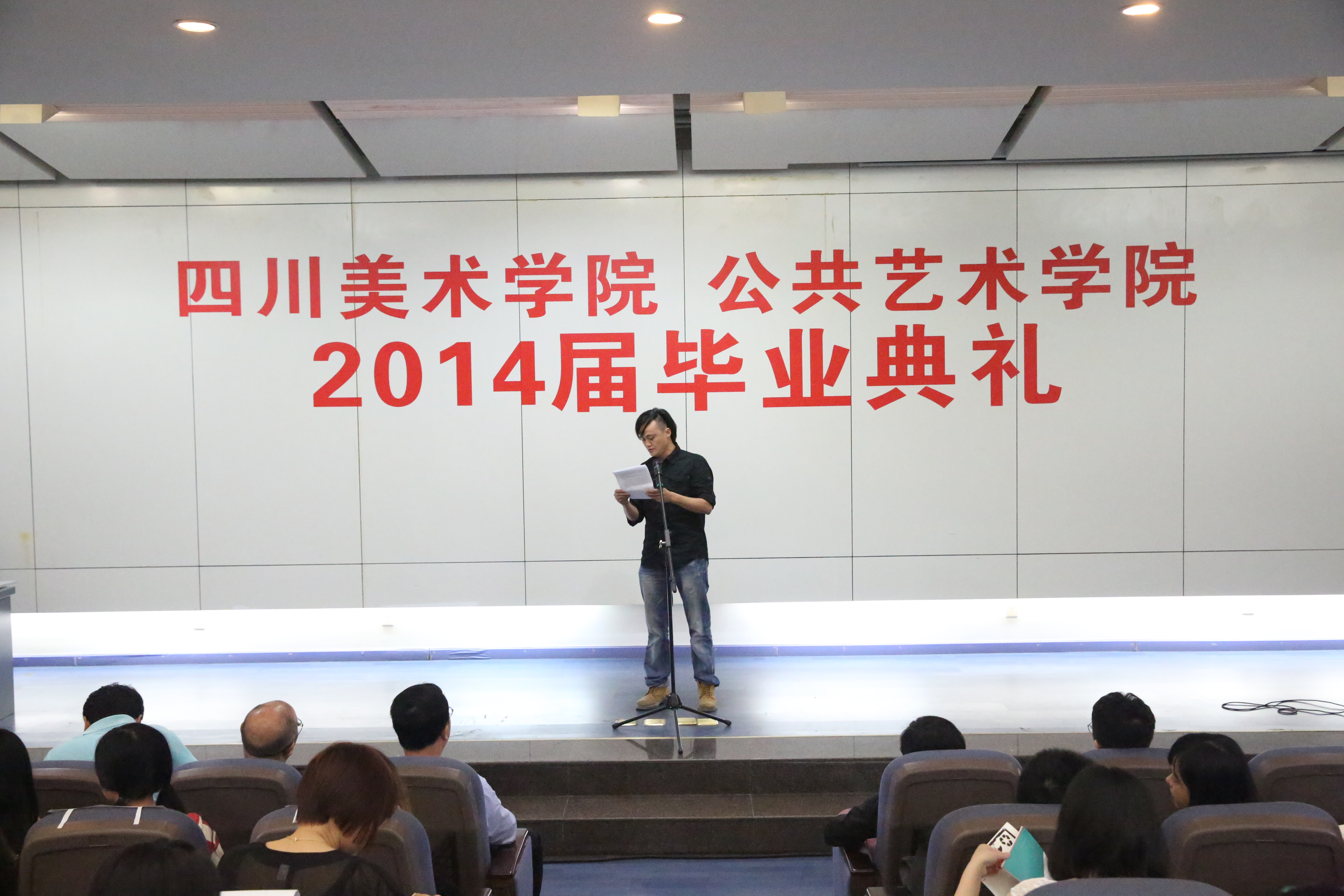 6月26日上午10:00,四川美术学院公共艺术学院2014届毕业典礼在黄桷坪校区学术报告厅举行。校党委副书记左益、公共艺术学院党政领导沈渝德、黄山、秦谊和教师们参加了典礼,由秦谊副书记主持。