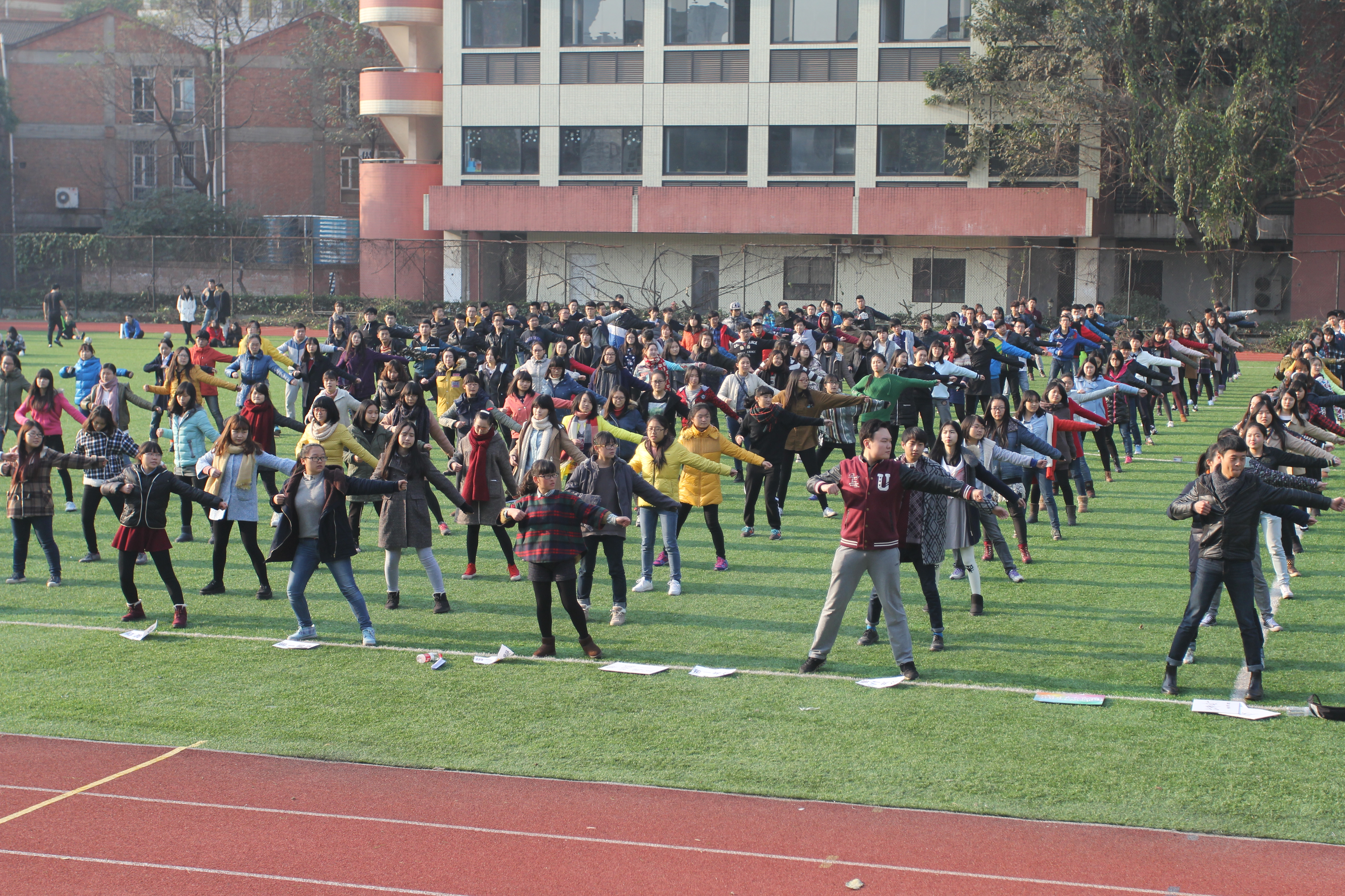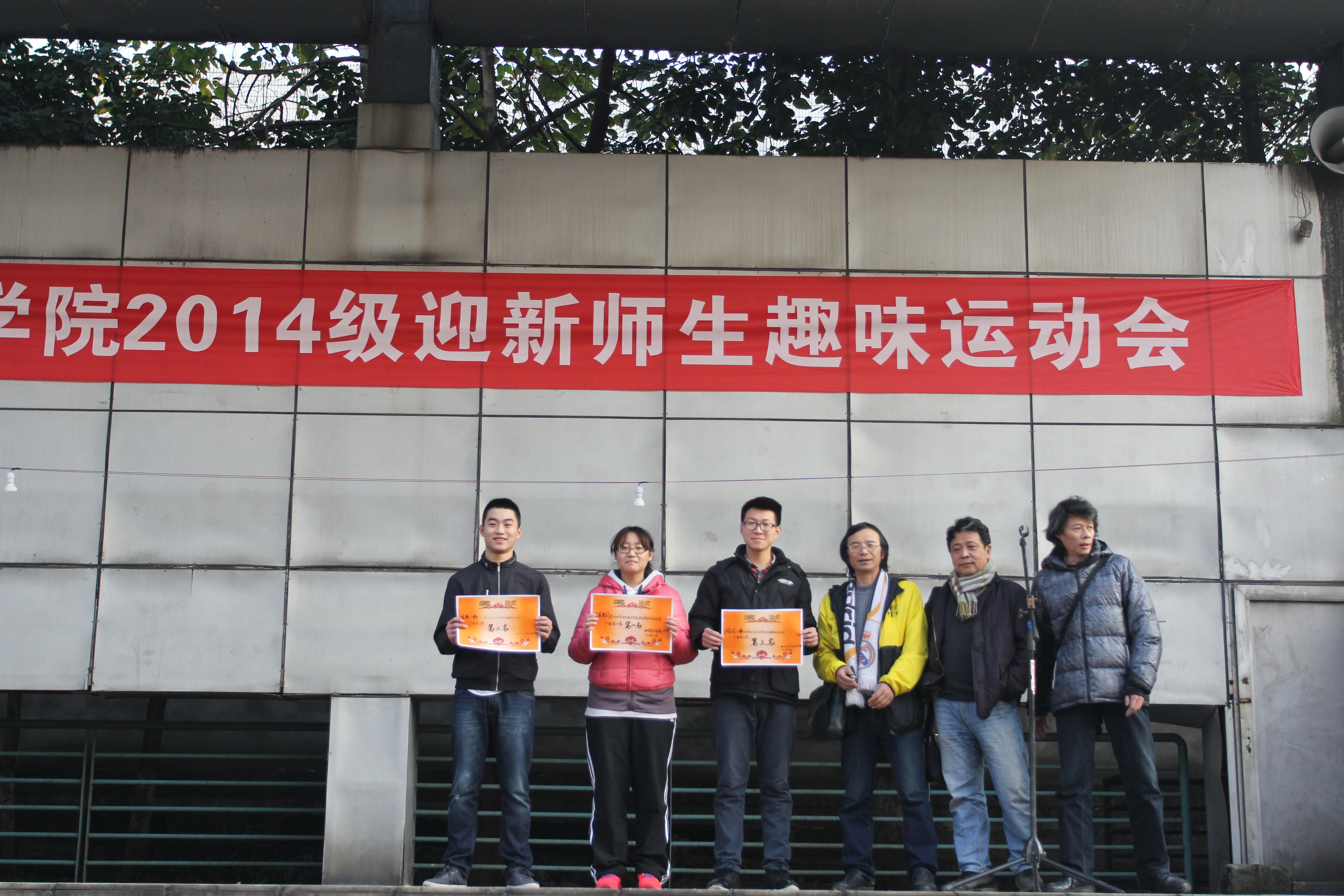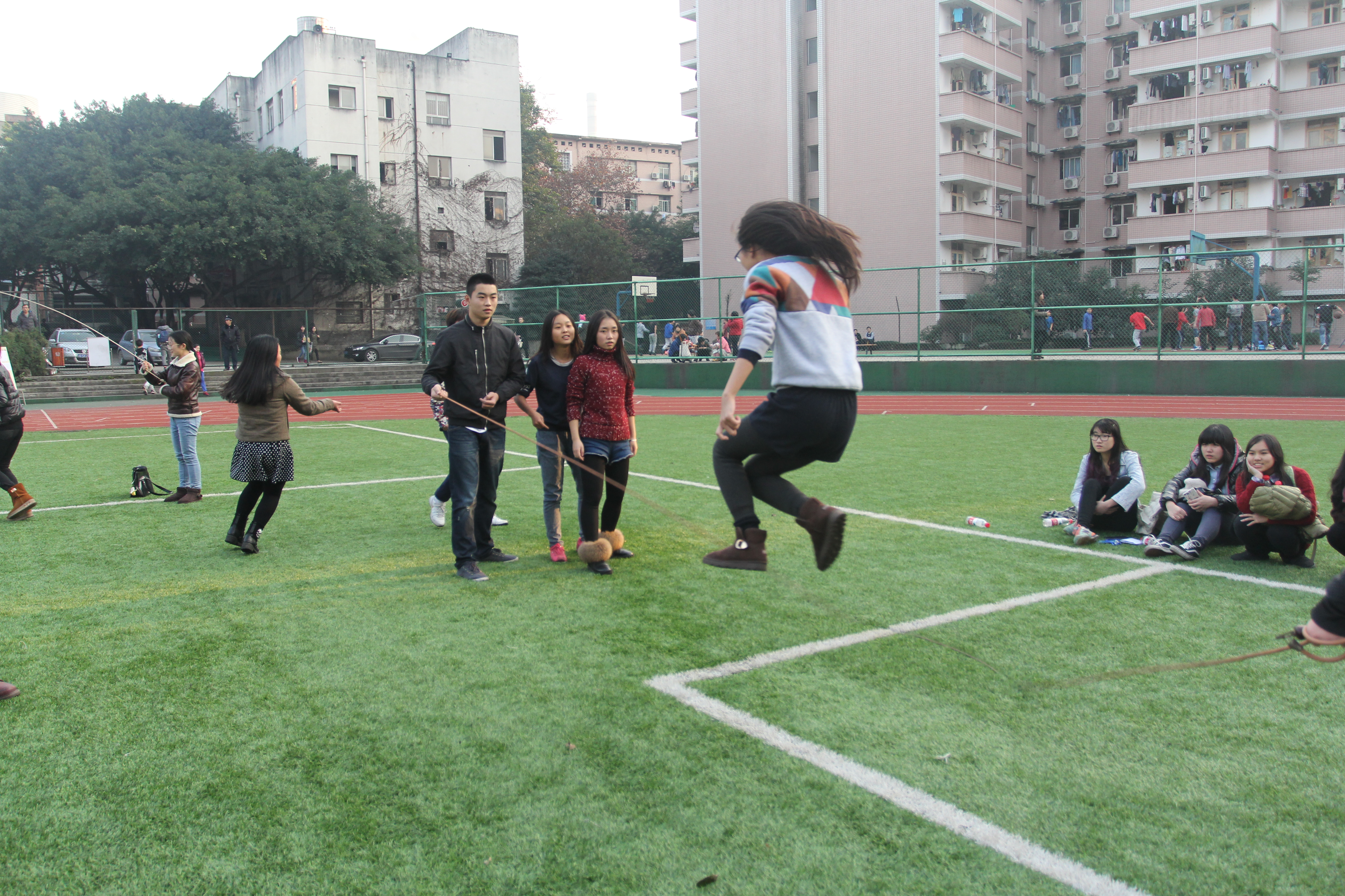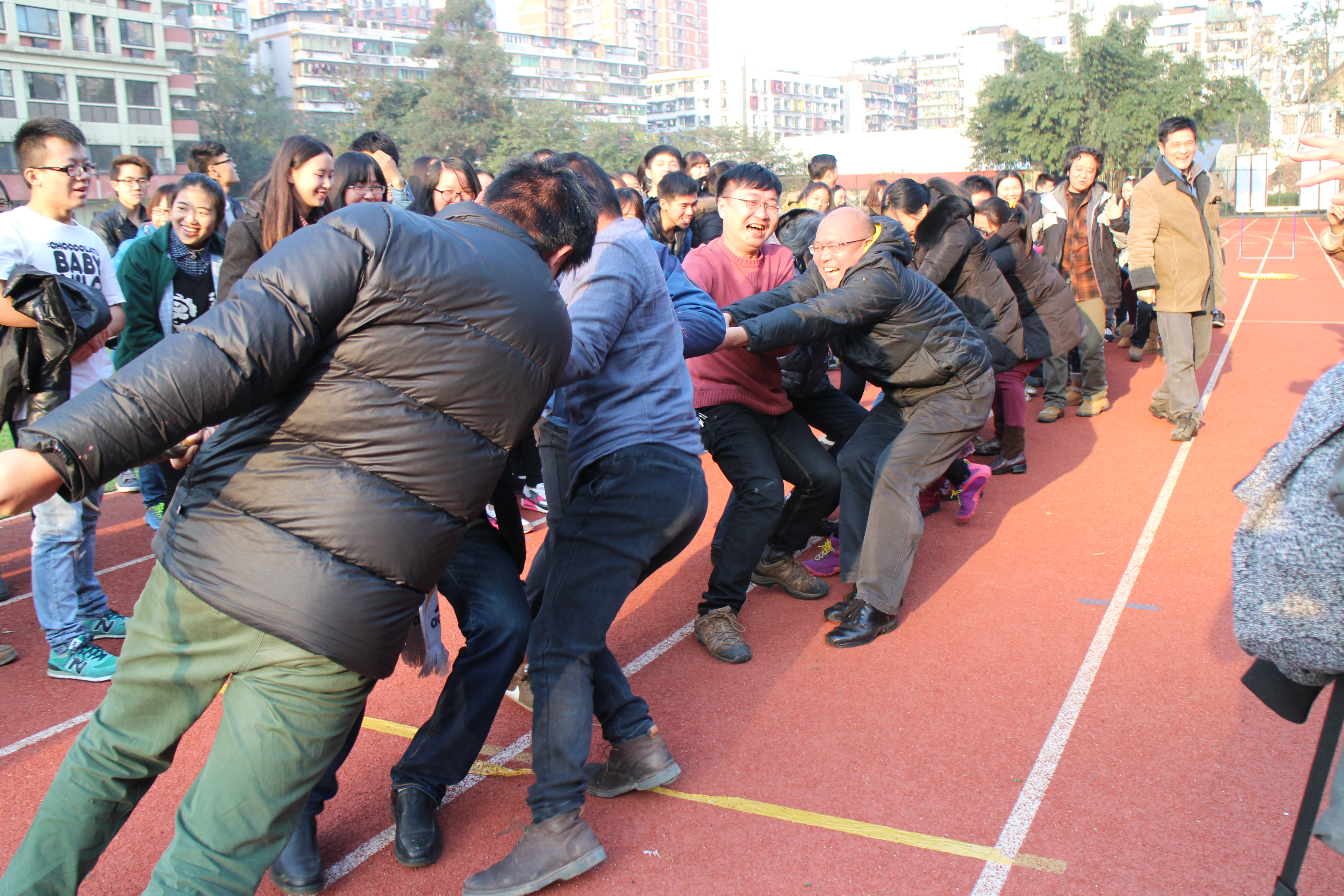 银杏飘黄,冬阳送暖。12月19日下午3:30,公共艺术学院师生伴着久违的暖阳,在黄桷坪校区田径场开展了迎新年趣味运动会。学院党政领导沈渝德、谢鸣理、秦谊、黄山带领教职工参加,与500名2014级新生一起健身互动。