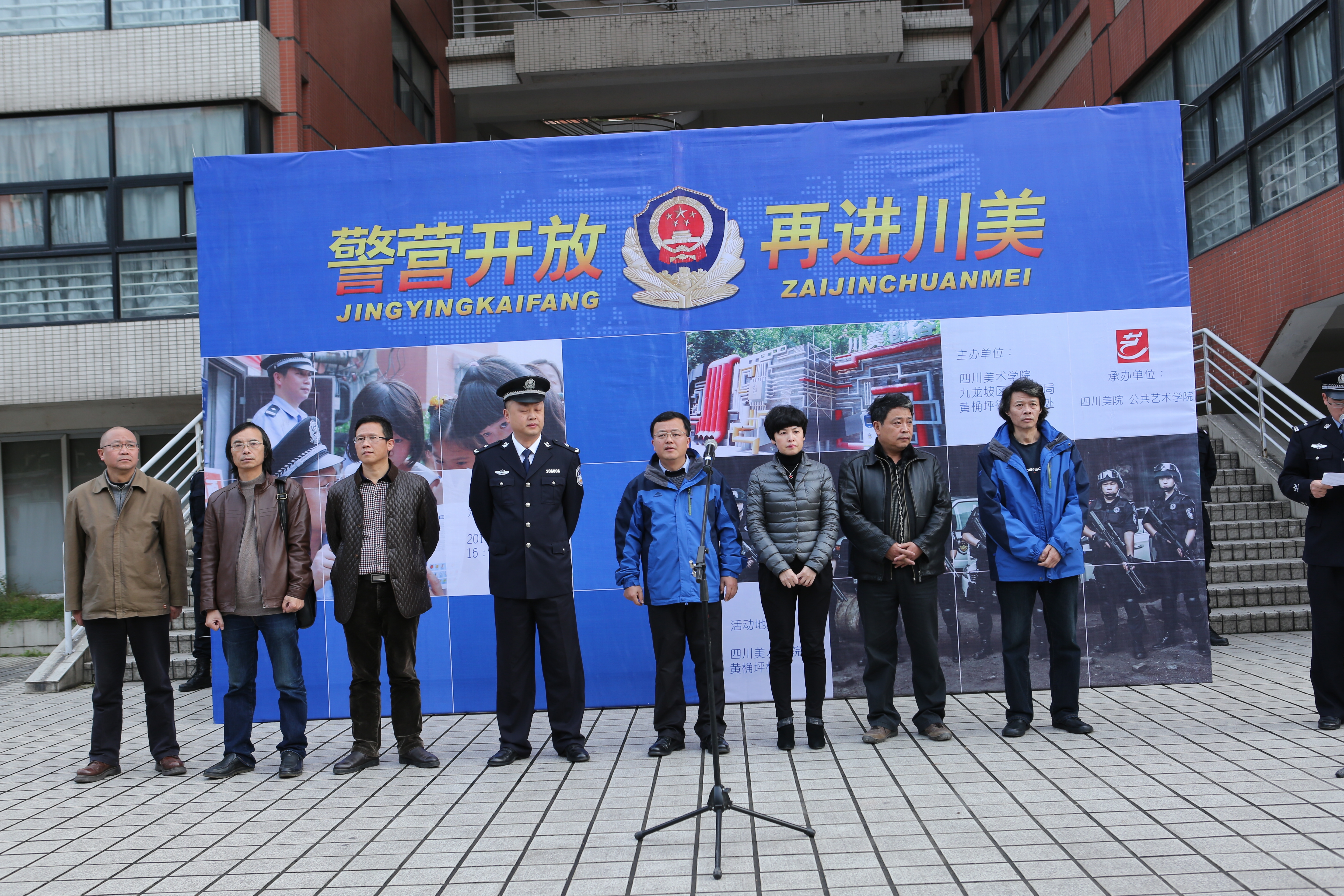 今天,金秋送爽,暖阳当照。靛蓝的警服与川美校园金黄的银杏叶构成了最美的风景。11月27日下午4时,在我校黄桷坪校区综合楼小广场热烈举办了主题为“警营开放 再进川美”的消防安全教育活动,我校党委副书记、公共艺术学院党委书记兼院长左益教授、九龙坡区分局副局长张学军、公共艺术学院领导沈渝德、谢鸣理、秦谊和黄山出席本次活动开幕仪式。