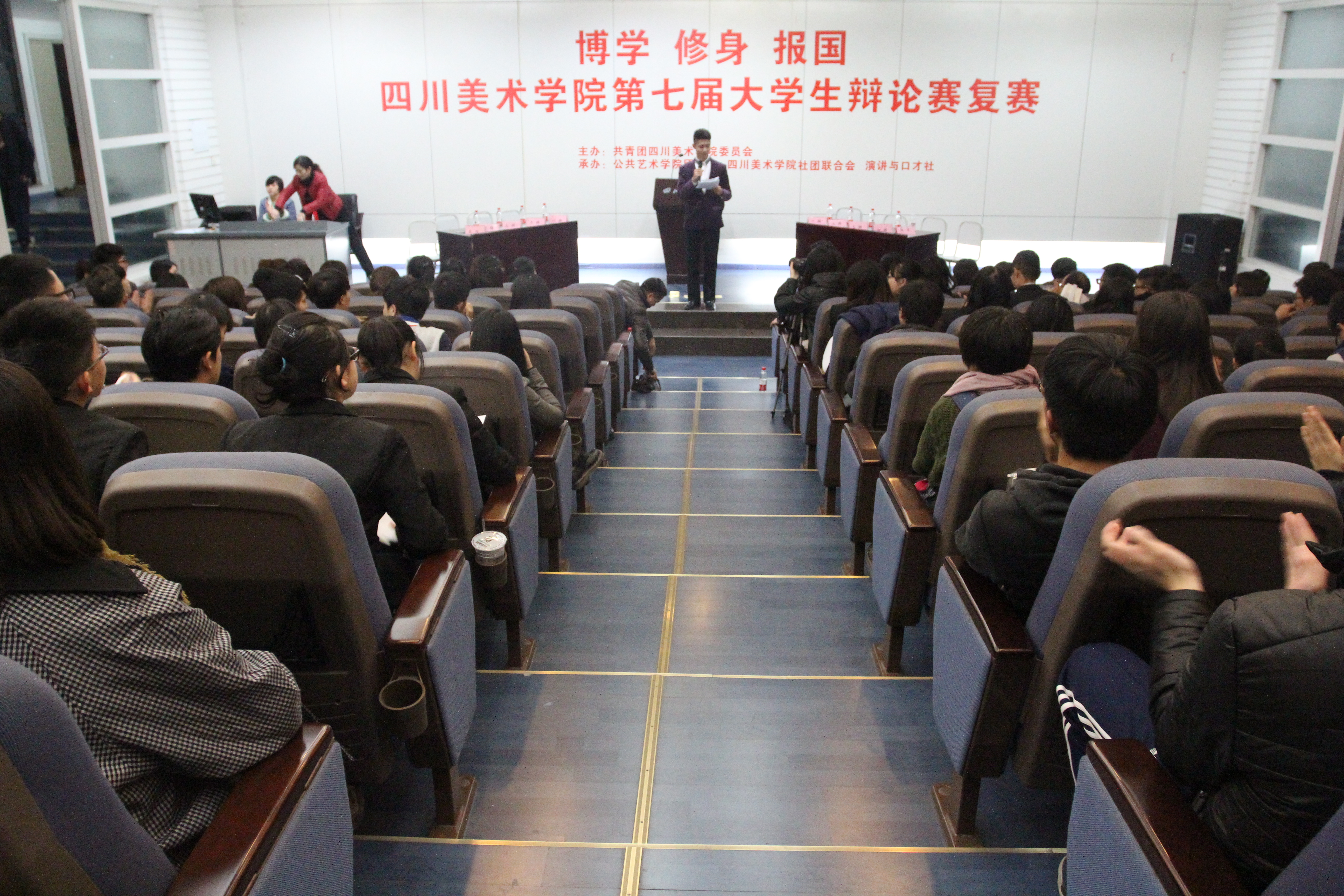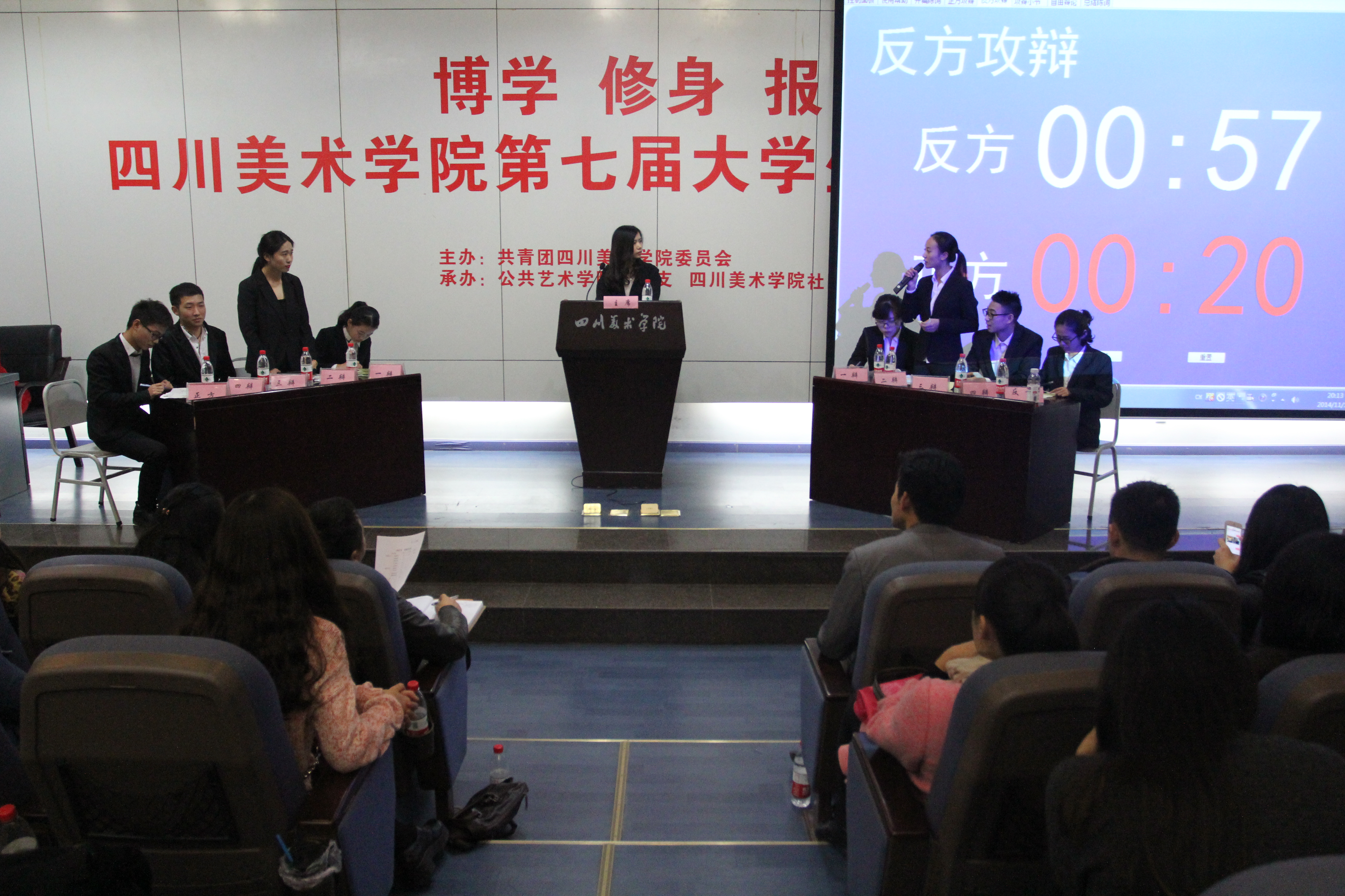 11月19日晚6:30,由共青团四川美术学院委员会主办,公共艺术学院团总支、四川美术学院社团联合会、演讲与口才社承办的“四川美术学院第七届大学生辩论赛复赛”在黄桷坪校区学术报告厅热烈举行。从初赛中脱颖而出的油画系、设计艺术学院、建筑艺术系、美术学系、新媒体艺术系、公共艺术学院6支代表参加了本轮复赛。