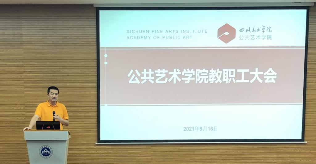 9月16日下午3点,公共艺术学院在黄桷坪校区学术报告厅召开新学期全体教职工会议,传达学习学校开学干部大会精神,并部署新学期工作。公共艺术学院全体教职员工及班子成员参加了会议,会议由党总支书记雍朝永主持。