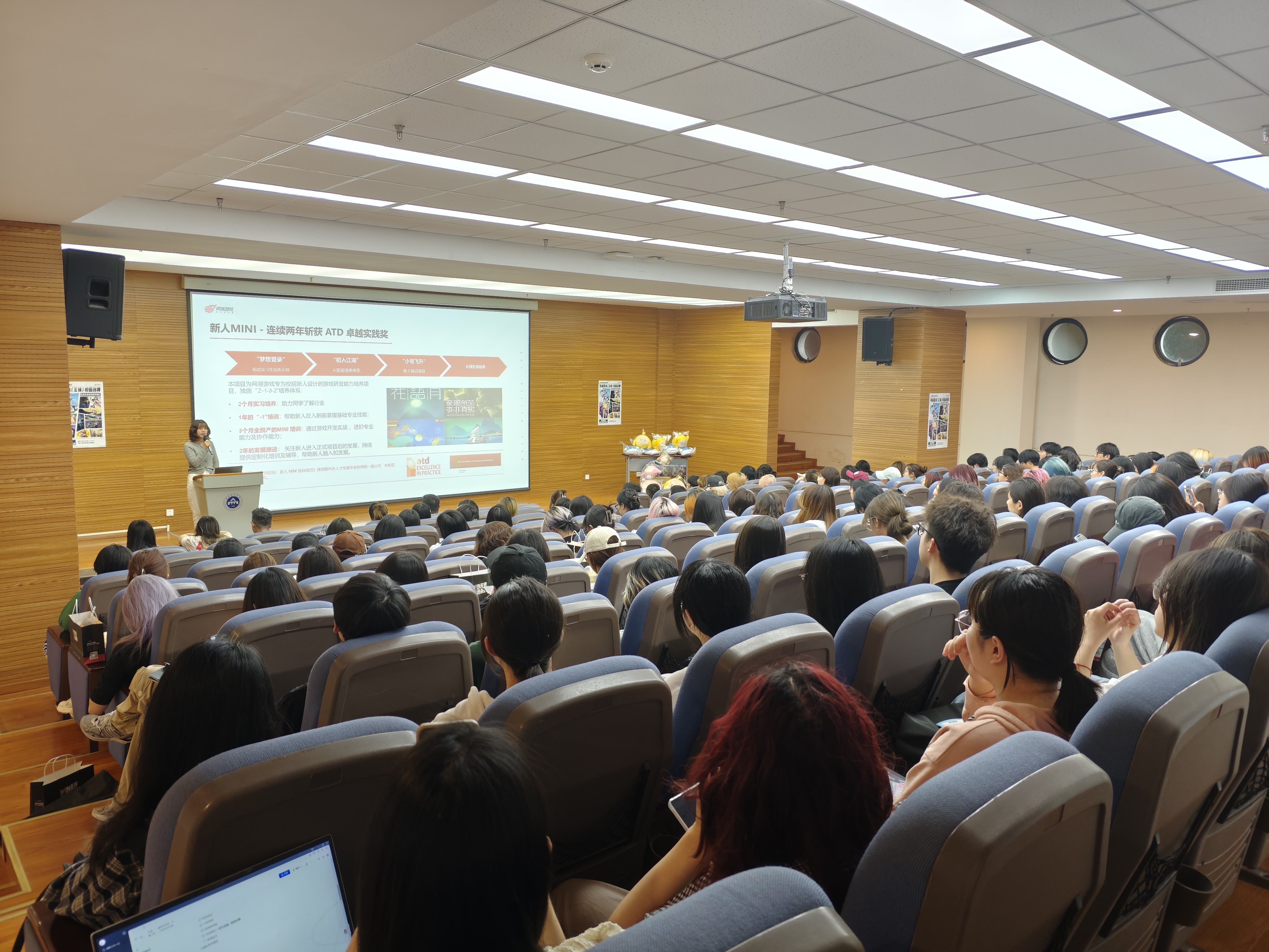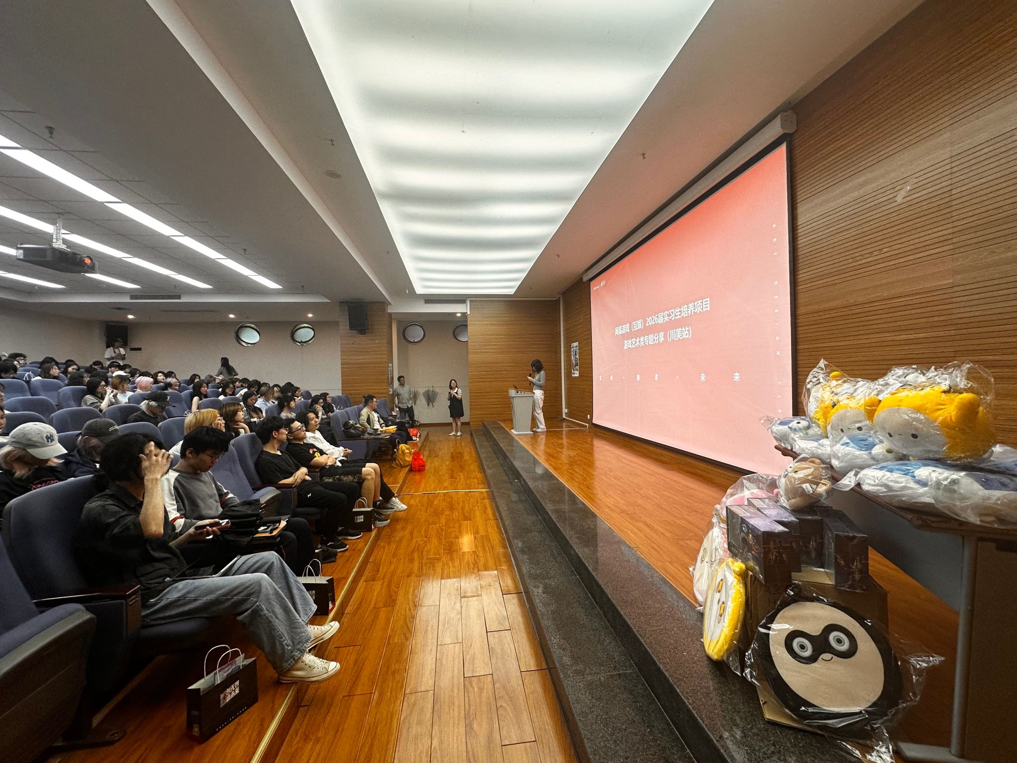 4月21日,网易游戏(互娱)在黄桷坪校区学术报告厅举办艺术设计专场校园宣讲会。本次宣讲会既面向2025届优秀毕业生开放求职通道,也面向2026届招聘实习生,100余名来自不同年级的同学参加了本次宣讲会。