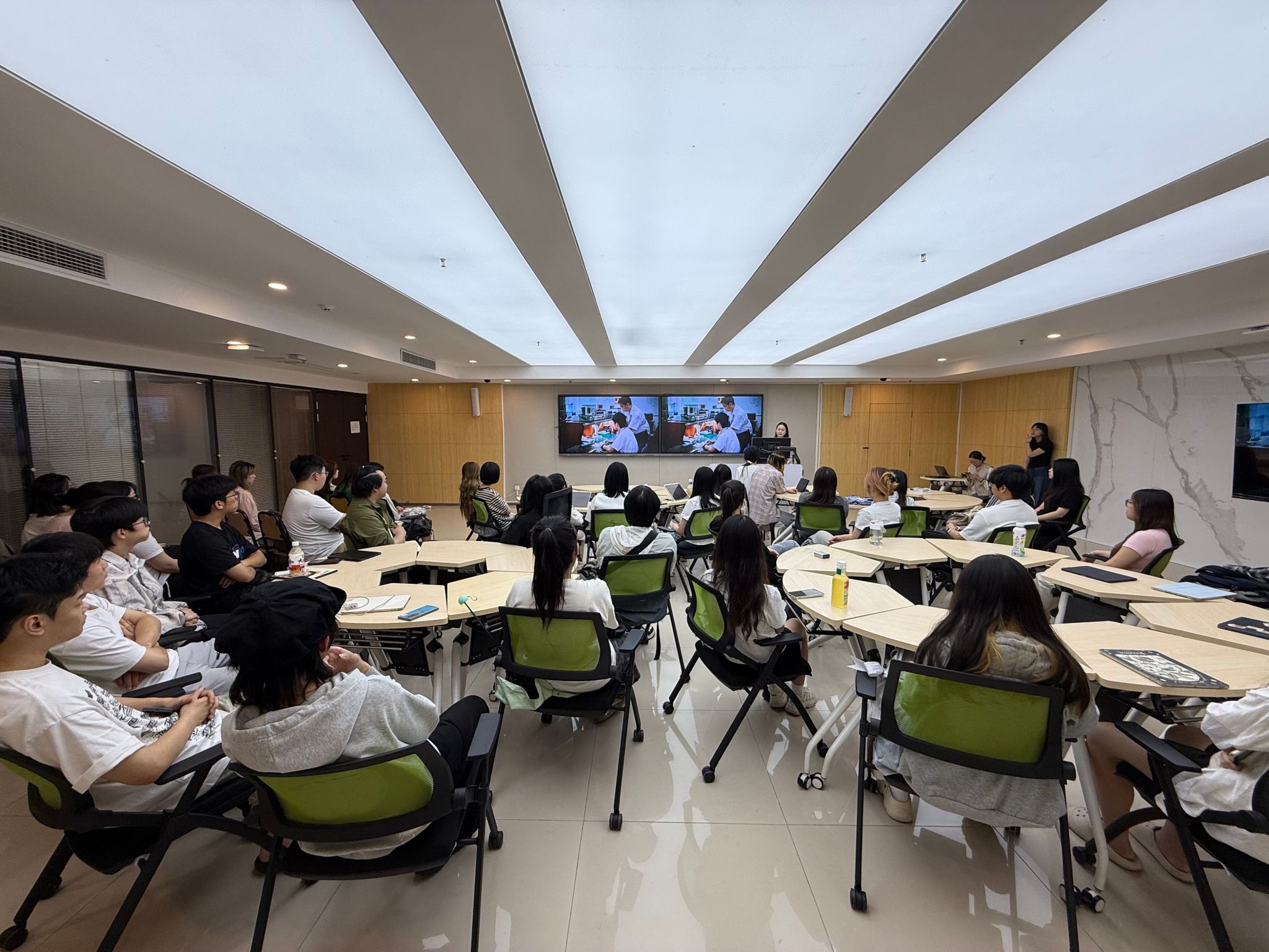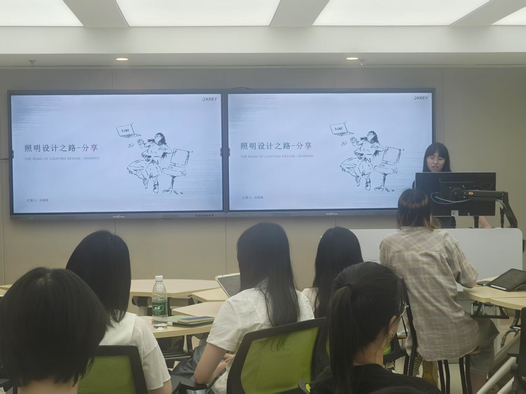 宣讲会围绕照明设计行业前沿、企业人才培养模式及职业发展路径展开,并邀请企业主案设计师、2022届校友孙海琳分享成长经验。企一照明技术总监在宣讲中重点解读了“艺术与功能融合”的设计理念,通过获奖案例展示了智能照明系统在酒店、商业综合体及适老化改造中的应用。