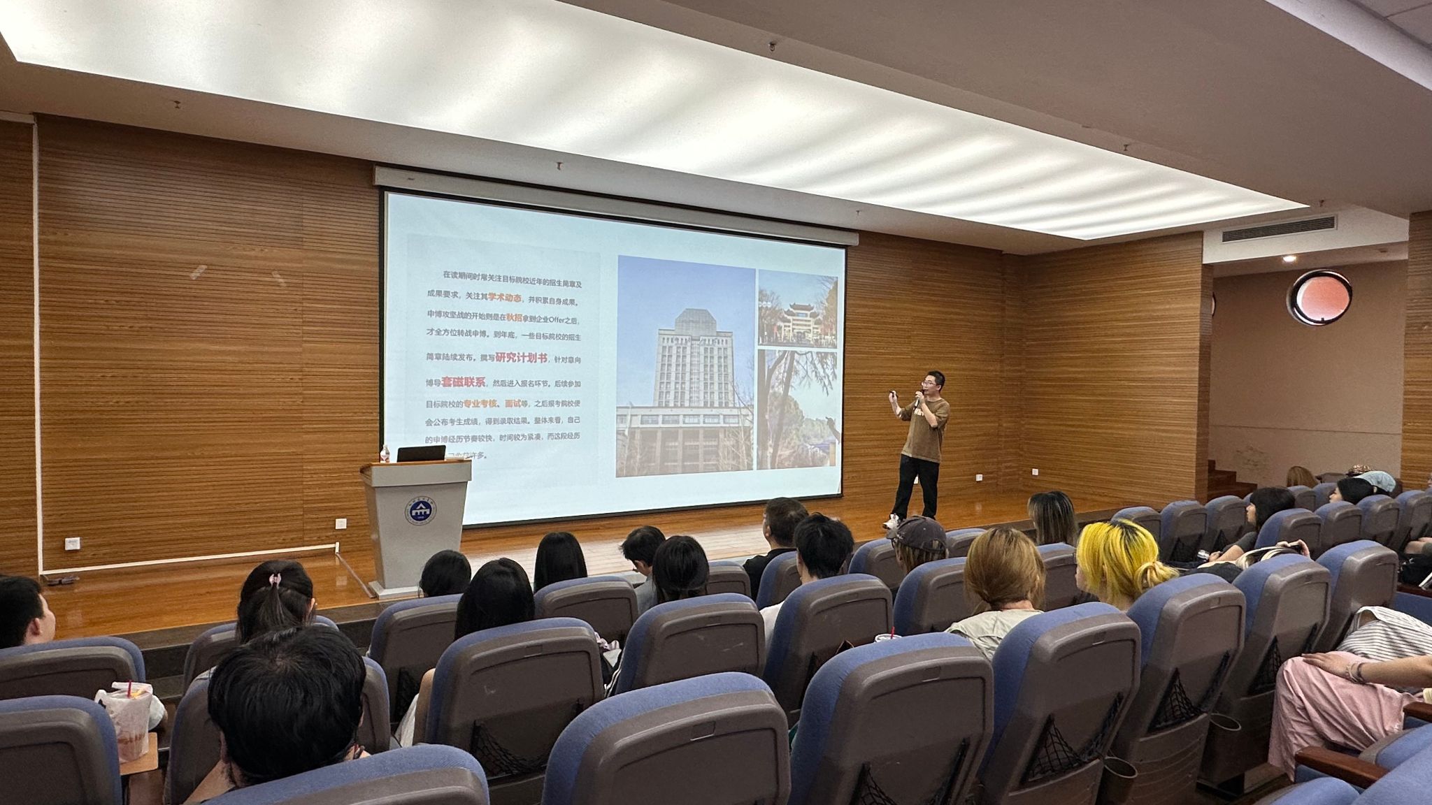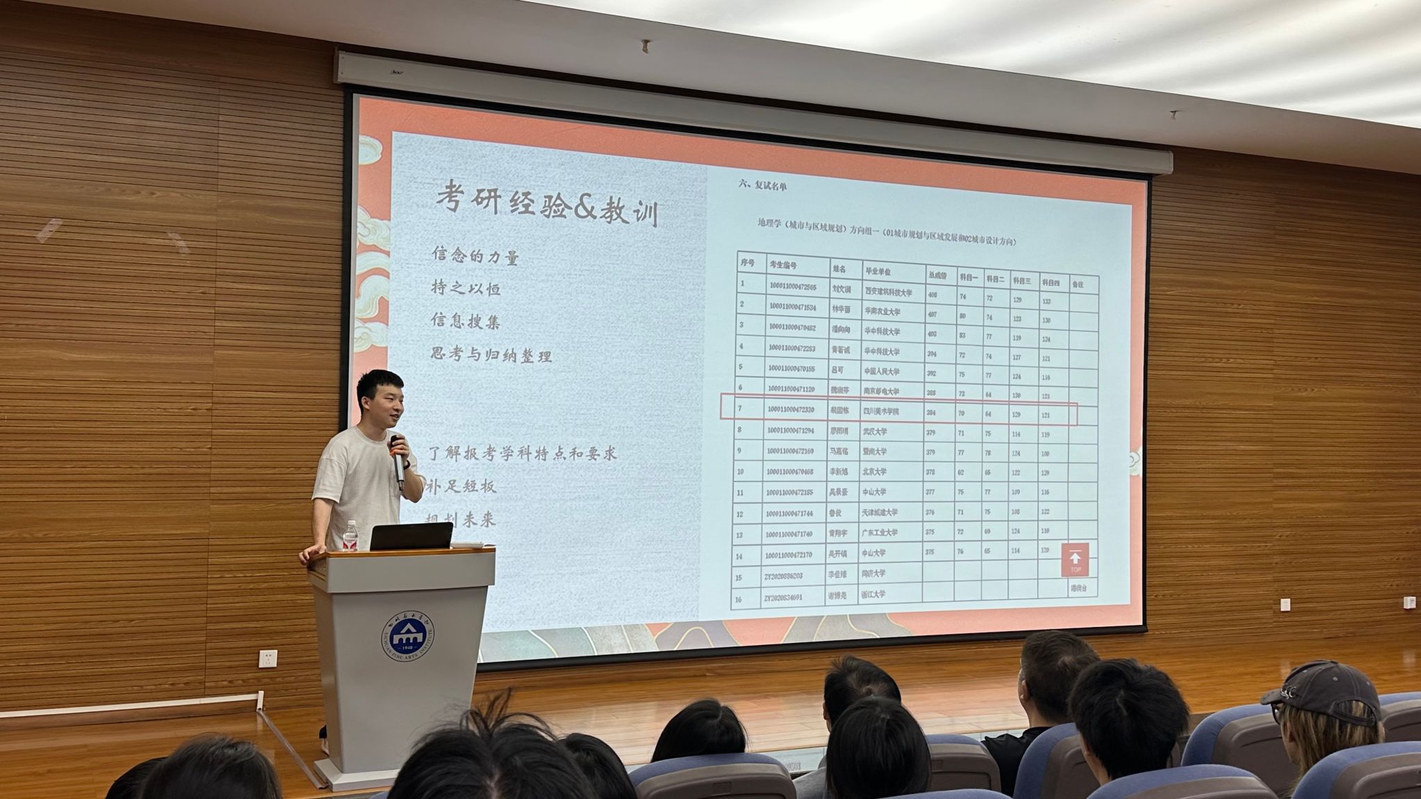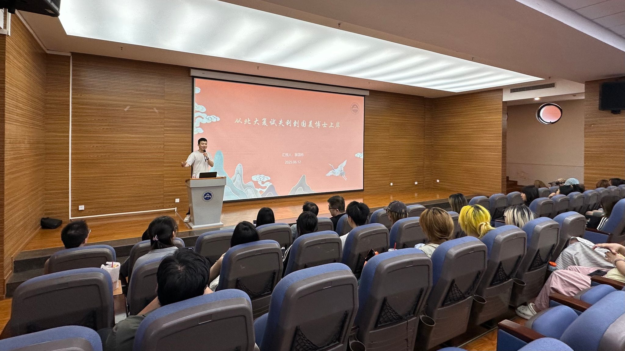 6月12日,公共艺术学院在黄桷坪校区学术报告厅举办“榜样力量 追光前行”学业规划与就业指导活动系列之考研考博经验分享会。学院党委副书记、纪委书记张坤,全体辅导员以及本硕学生代表参加,考取江南大学博士研究生的2025届毕业生邱孟柏、考取中国美术学院博士研究生的2025届毕业生裴国栋分别作学习经验分享。