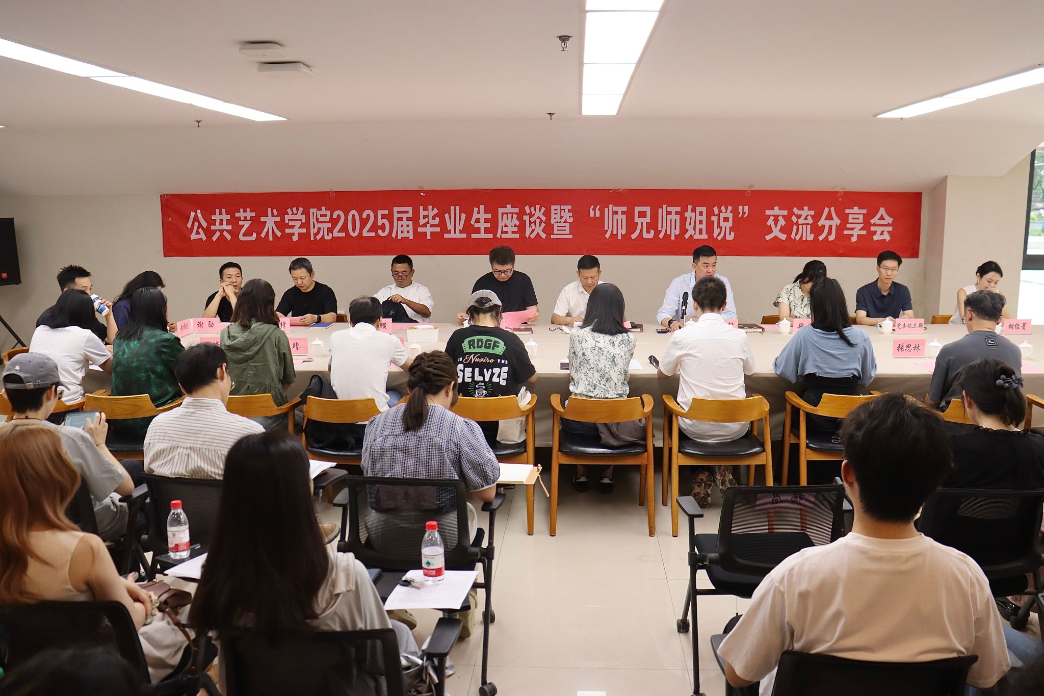 6月18日上午,公共艺术学院在四会议室举办了2025届毕业生座谈暨“师兄师姐说”交流分享会。公共艺术学院党政领导雍朝永、郭晏麟、谭璜、魏婷、张坤,和教师代表、毕业生、低年级学生代表参会,学校党委保卫部吴俊清副部长作为特邀嘉宾出席会议。