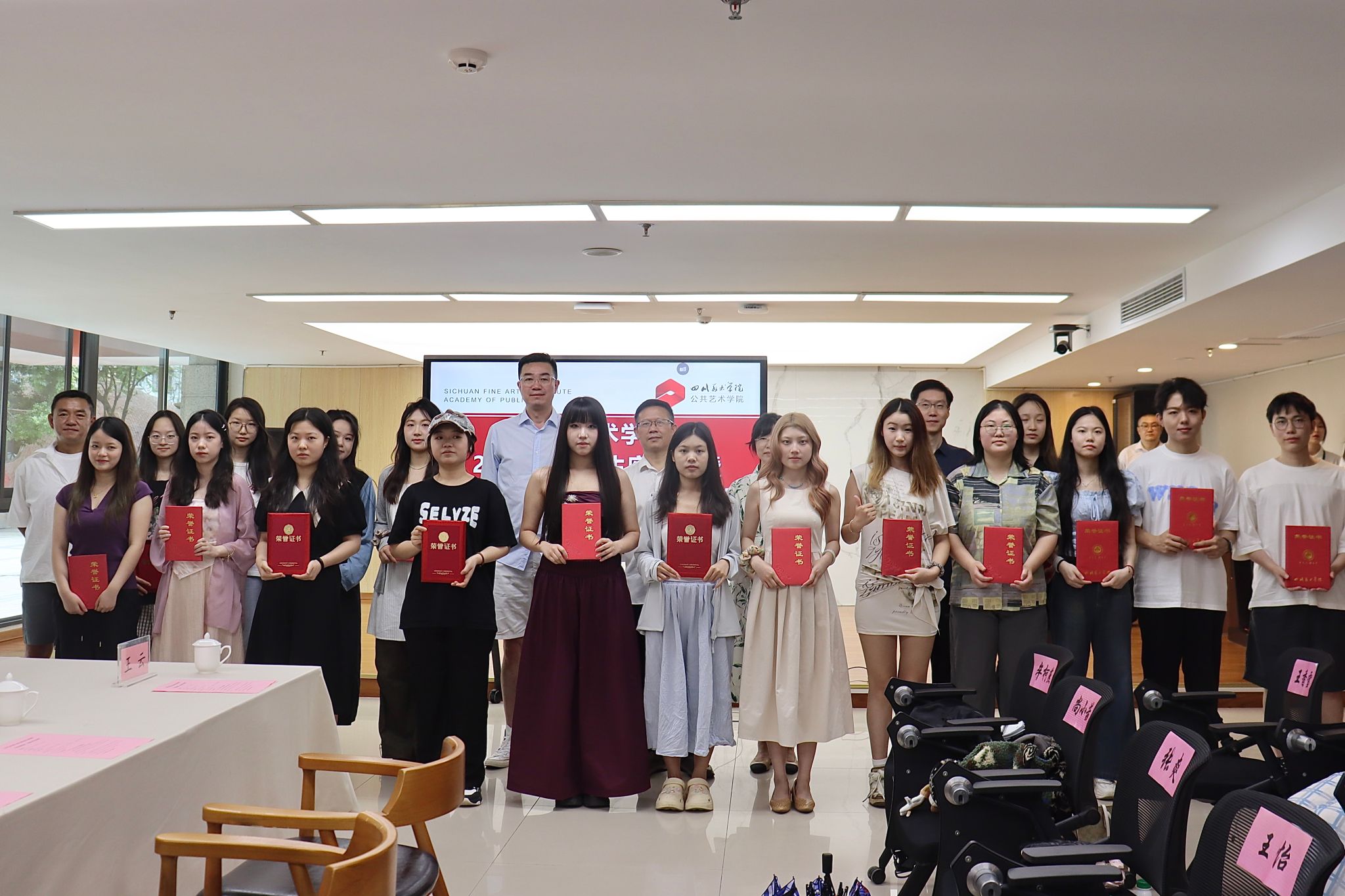 会上,学院对四川美术学院优秀毕业生,获得四川美术学院优秀毕业设计作品“学院奖”以及公共艺术学院优秀毕业作品的同学进行表彰。