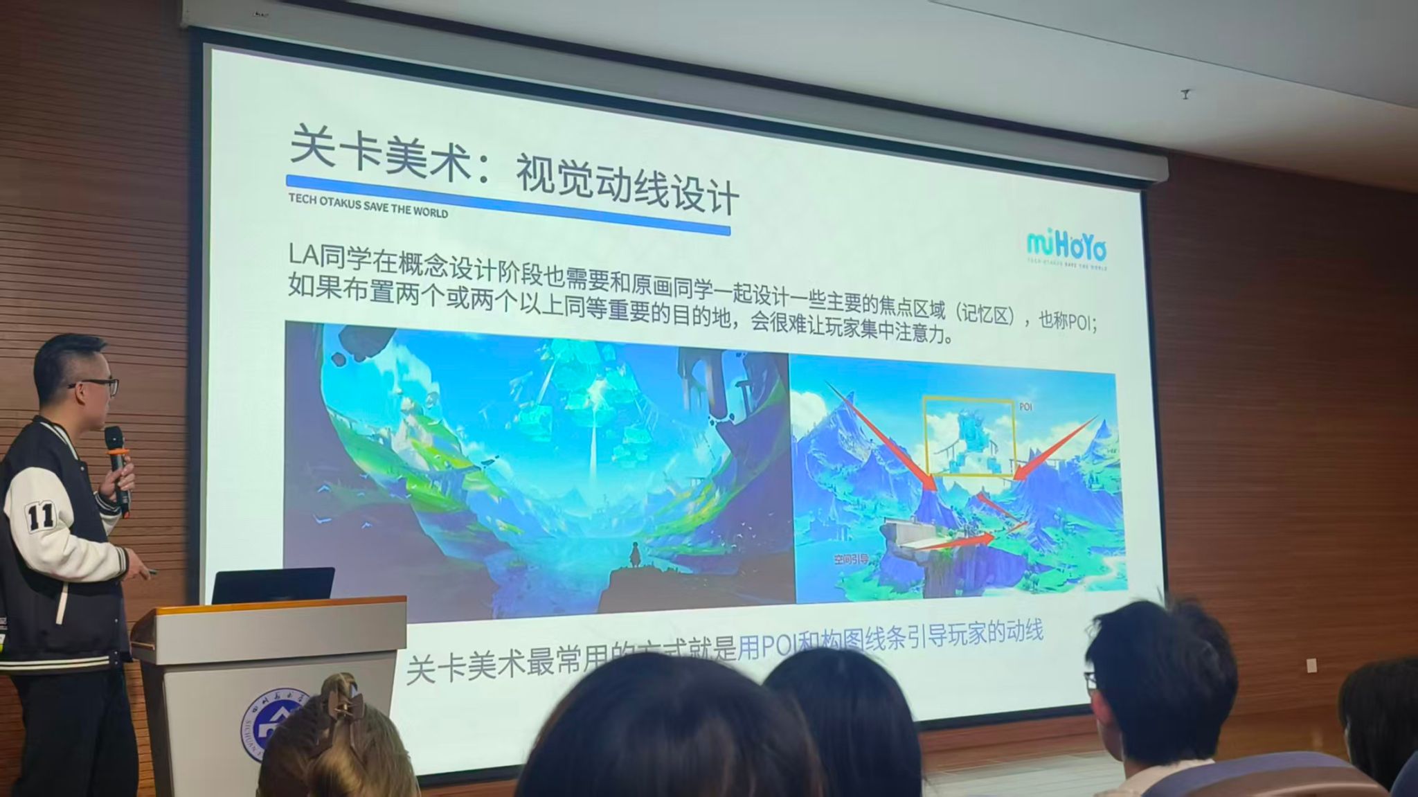 为深化校企合作,拓宽学生就业渠道,精准对接文创行业人才需求, 4月1日,公共艺术学院于黄桷坪校区学术报告厅举办米哈游专场校园宣讲会,为学院学子搭建与头部游戏企业交流的优质平台,吸引众多学生到场参与。