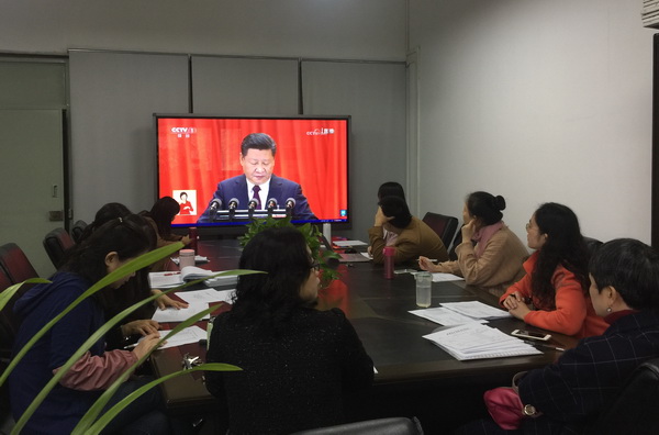 根据学校统一部署,10月18日上午,机关一总支各支部通过不同形式组织全体党员同志集中收看了十九大开幕会。其中,一支部、二支部全体党员按照学校统一要求在五会议室集中收看了开幕会;三支部在思政课教研部办公室组织集中收看,并举行了心得体会交流讨论会;四支部在三会议室组织了集中收看。其中还邀请了一些党外人士参加了集中收看学习。