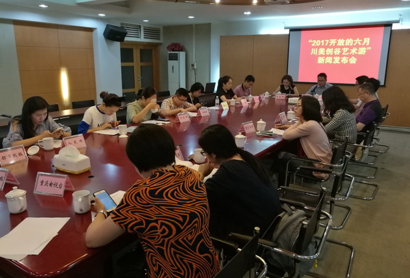 5月26日下午3点,“2017开放的六月·川美创谷艺术游”新闻发布会在四川美术学院黄桷坪校区综合楼第三会议室举行。九龙坡区文化委主任彭斌、副主任苏伦、副主任姚舜、副主任荣辉,四川美术学院公共艺术学院党总支副书记郭小兵,重庆日报、重庆晨报、重庆晚报、大渝网、华龙网、重庆电视台等20余家媒体记者参加。发布会由九龙坡区委外宣办副主任王薇娜主持。