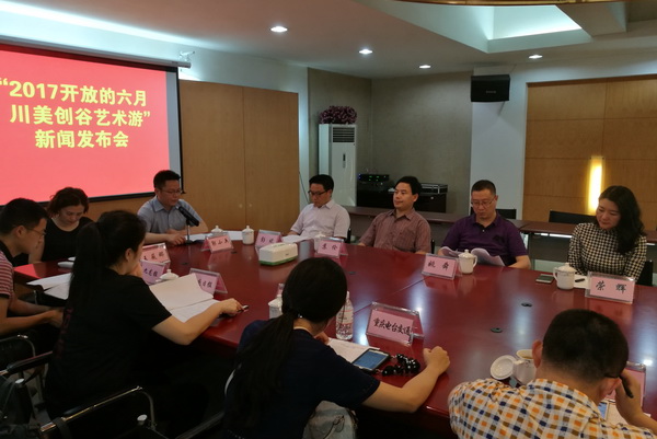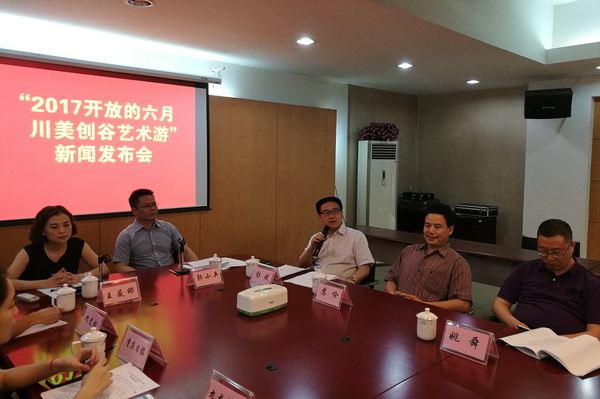 郭小兵介绍了“2017开放的六月•川美创谷艺术游”的总体安排及精彩看点等活动情况。他指出,此次活动将在6月2日开幕,活动经过多方精心筹备,不仅提升了传统项目的质量,还增加了许多精彩的项目,并总结了“新秀舞台,筑梦未来”“艺术盛宴,好戏不断”“互动体验,其乐无穷”“接轨市场,拉动消费”四大看点,将为广大市民在初夏时节奉献一场大众狂欢、精彩纷呈的艺术盛宴。