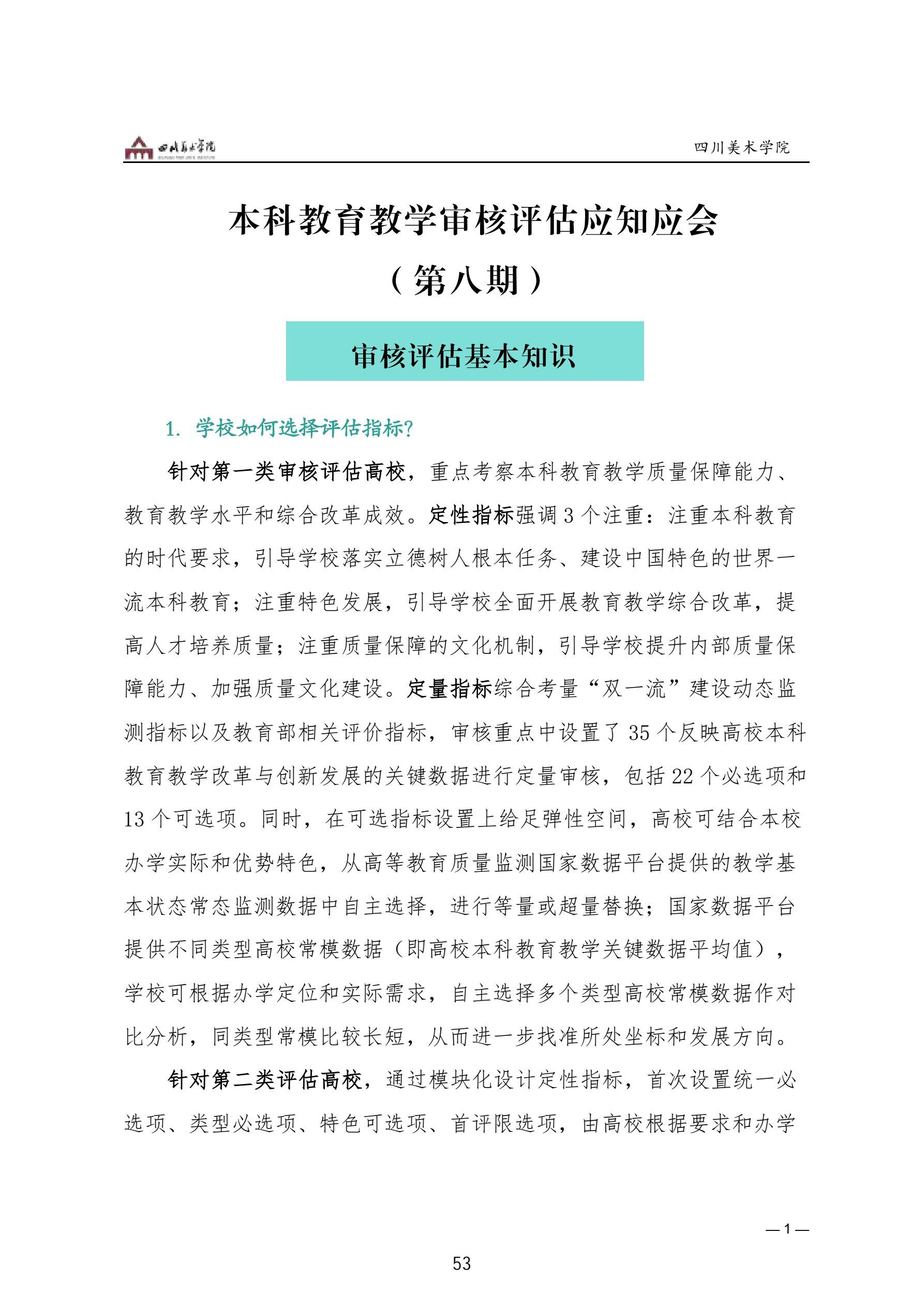 四川美术学院本科教育教学 审核评估应知应会(第八期)
