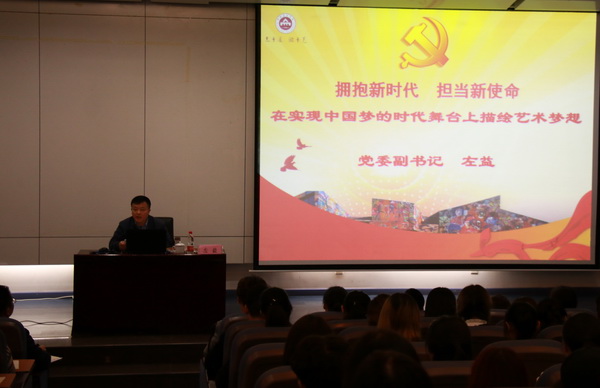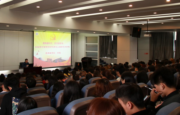 11月16日下午,重庆市委教育工委“党的十九大精神进校园”宣讲队成员、学校党委副书记左益在我校黄桷坪校区做了题为“拥抱新时代,担当新使命,在实现中国梦的时代舞台上描绘艺术梦想”的首讲报告。公共艺术学院党总支副书记郭小兵主持会议。黄桷坪校区近200名学生参加了宣讲会。