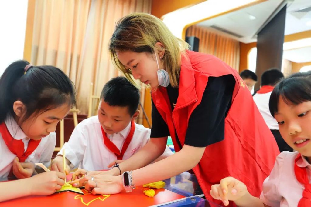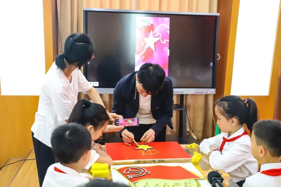 在我校师生党员的指导下,火炬小学同学们现场利用雕塑泥制作党徽、队徽,让同学们在创作过程中充分认识中国共产党的光辉历史的同时,感受雕塑艺术的魅力。现场互动反响热烈,当天的活动得到了新华社等媒体的报道。
