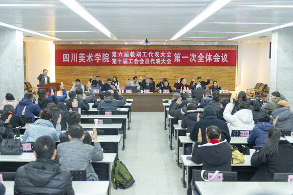 黄政致闭幕词。他指出,教代会、工代会制度是中国特色社会主义制度的有机组成部分,本次大会圆满完成了会议任务,是一次成功的大会。他对大家提出了三点希望:第一,全体教职工要统一思想,认清形势,明确任务,深刻认识到建设一流美院的重要性;第二,要坚持立德树人根本任务,切实加强学科建设;第三,要坚持多措并举,加强教师队伍建设,聚焦学校的重点工作,用“五大攻坚”统领学校的发展,打好攻坚战;第四,要坚持找准切入口、突破口,打造“思政+艺术”升级版。