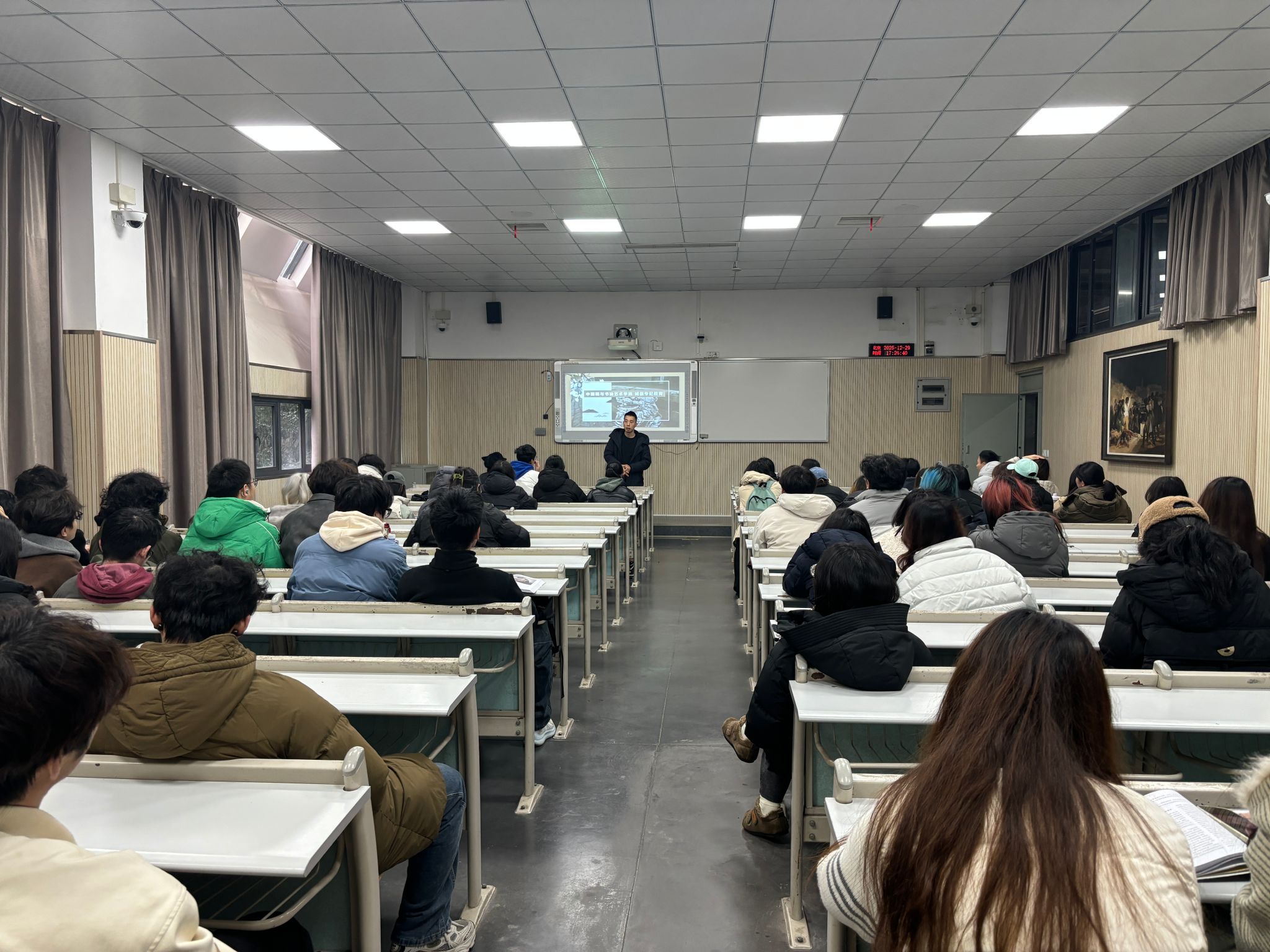 班会中,辅导员组织学生学习了《四川美术学院本科学生考试违规处理办法》,细致解读了考试违规行为界定,及考试违规后带来的相应处分和对评优评先的影响,为同学们拉起清晰的“纪律红线”。同时,也强调了考试诚信不仅是对知识的尊重,更是对艺术本真的守护,诚信既是立身之本,更是艺术创作的灵魂底色。