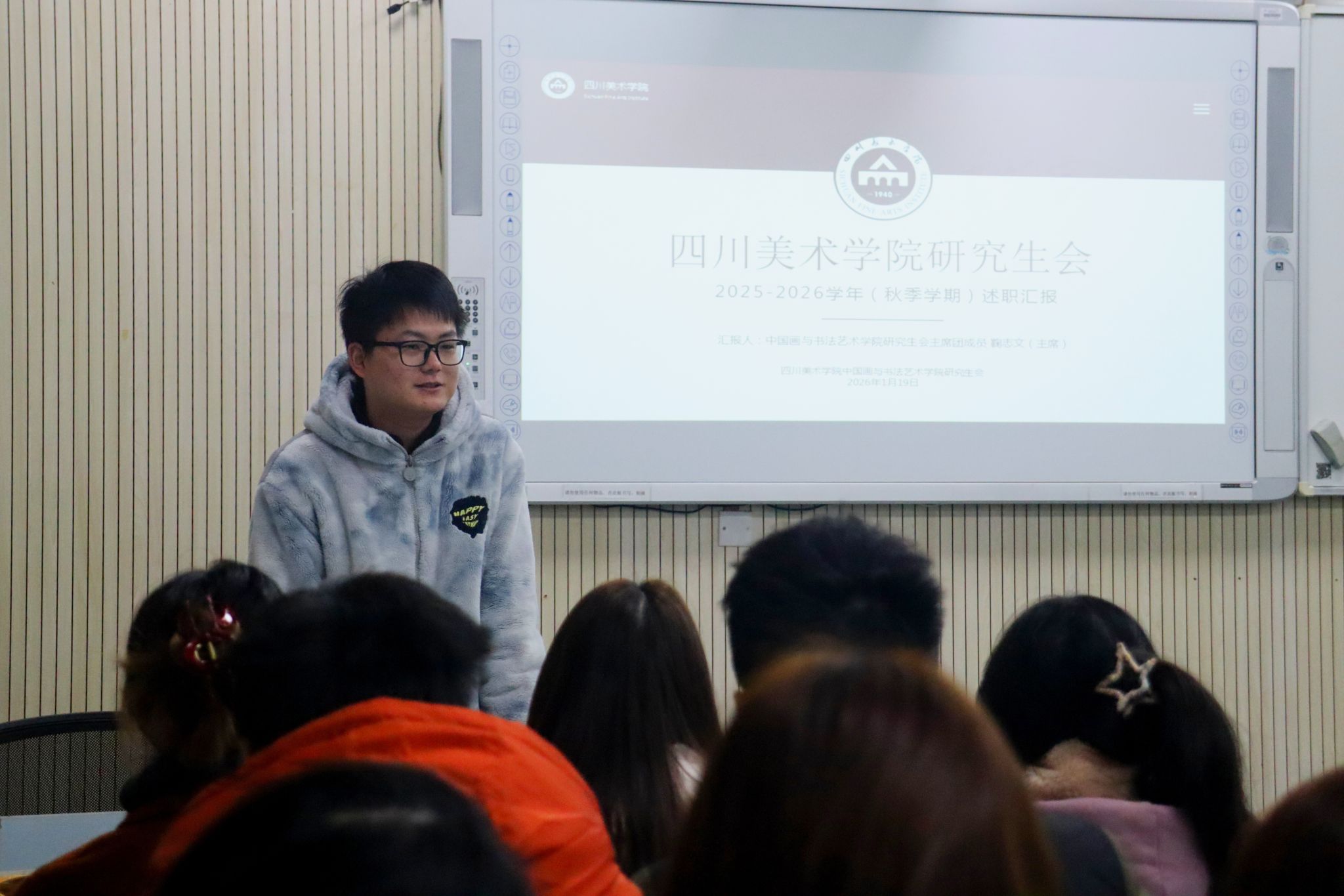 为全面总结2025年度工作成效,梳理经验、查补不足,明确新一年工作方向。近日,中国画与书法艺术学院在绘画楼HA301召开2025年度学生会、研究生会述职评议会。学院分团委负责人,学生会、研究生会成员,各班学生代表参加。