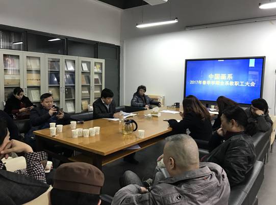 2月18日下午,中国画系召开新学期全系教职工大会,传达学习学校工作要点,检查开学情况,布置新学期工作。中国画系党政领导和全体教职工参加会议,会议由系党总支负责人王士臣主持。