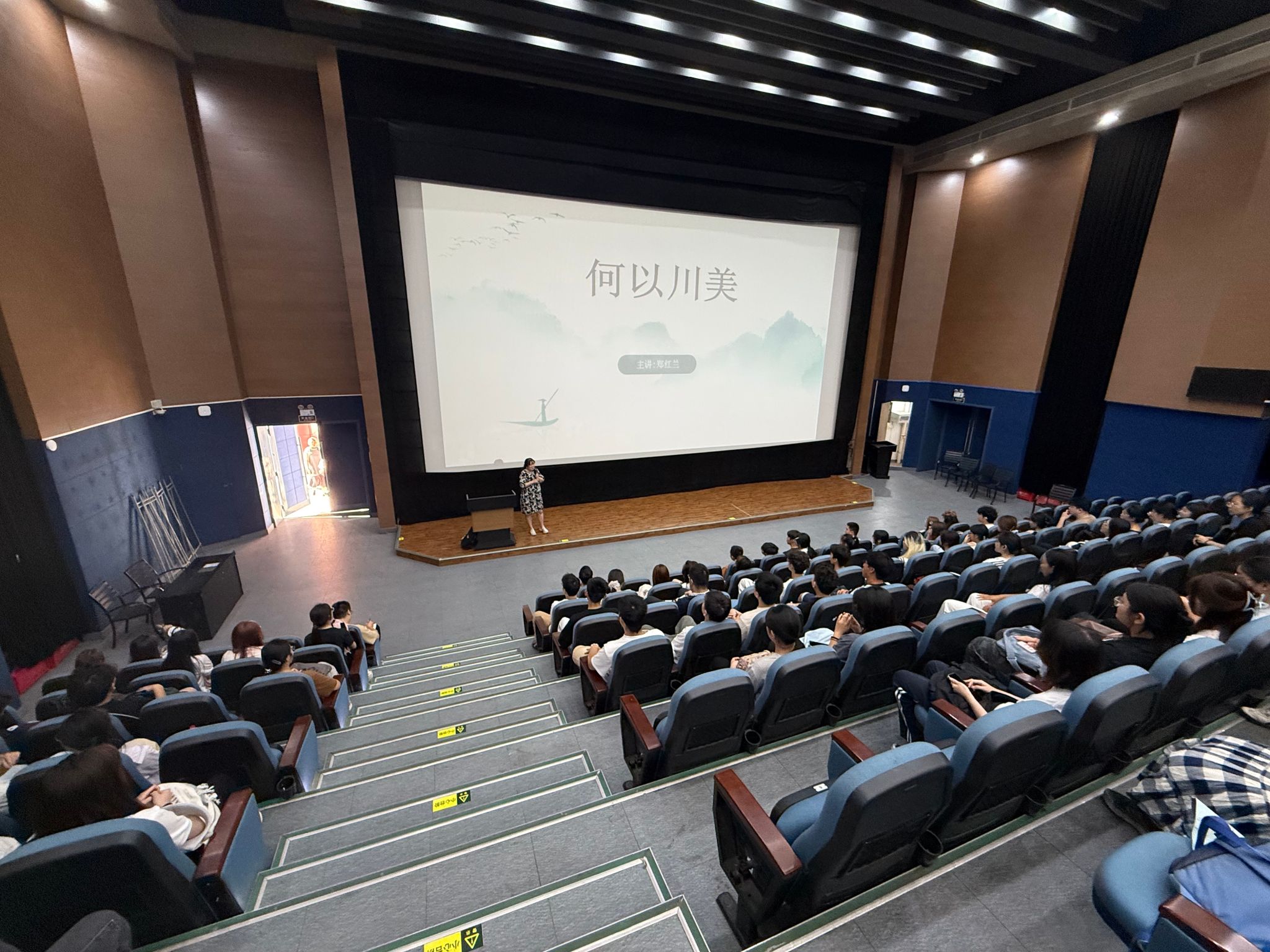 9月7日上午,中国画与书法艺术学院2025级新生“开学第一课”在小剧场举行。学院党委副书记郑红兰为新生授课。