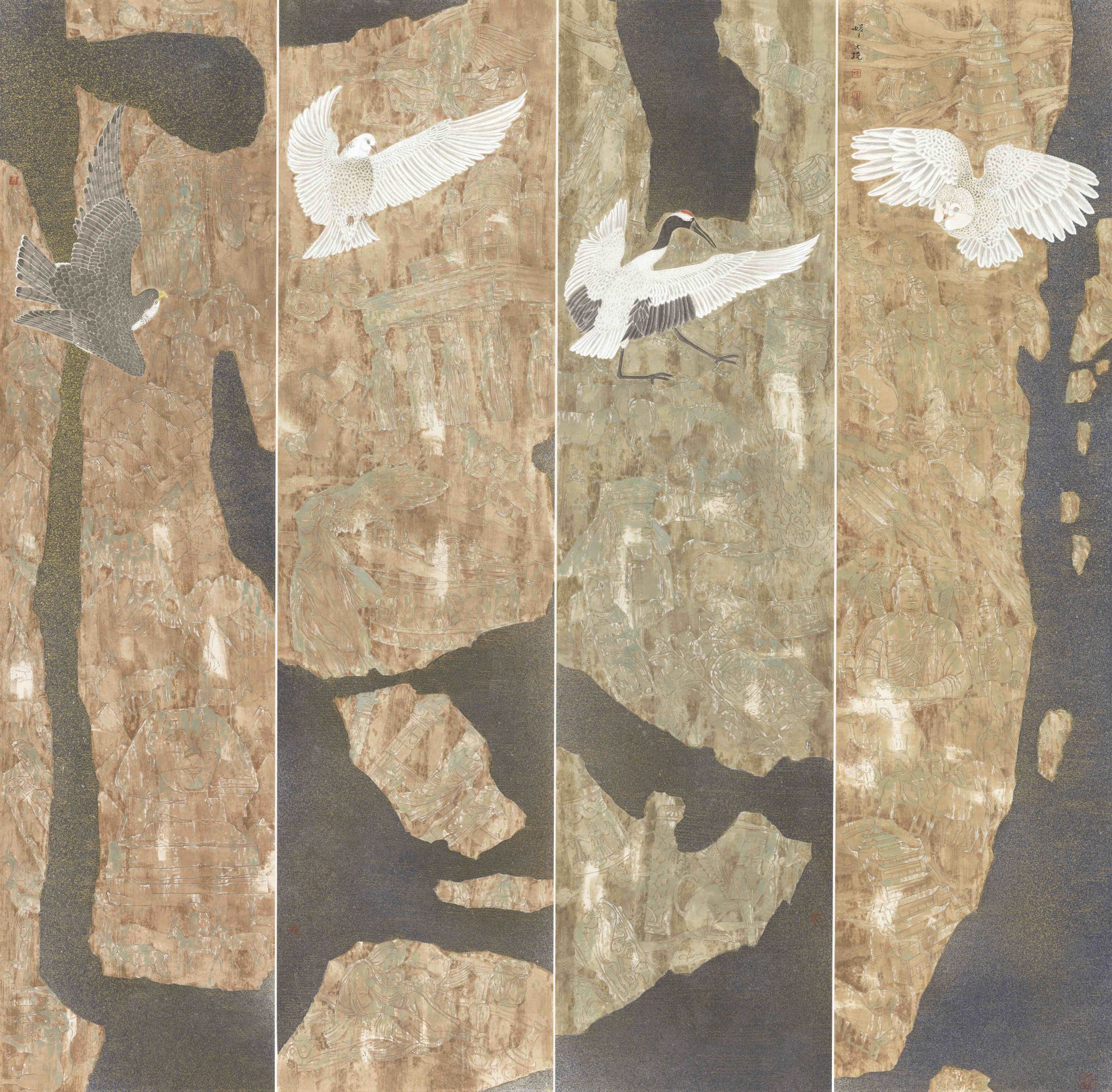 作品以鸟瞰地球的特殊视角,通过描绘鸟类的迁徙、飞翔这一现象,来表现丝绸之路这一跨越国家、跨越不同文明交流的壮举。在创作过程中心有所思,情系祖国,回顾历史,展望未来,本着继承中国文化,探历史线索,绘丝路精神,为人民抒情的创作理念,运用兼工带写的中国画技法表现对各个文明之间超越时空的无限遐想。飞翔无限,鸟飞无际,正如丝绸之路在不同文明的交流中的润物无声、交流无限。展现了以中国为主的东方文明、伊斯兰文明、欧州文明与和非洲文明形成丝绸之路的现象。作品也预示着中国一带一路新丝绸之路给人类文明带来的开放、交流,和平、共同繁荣的中国的智慧。把中国梦同丝绸之路沿线的各国人民的梦想结合起来,促进人类文明在精神上实现共同富裕。